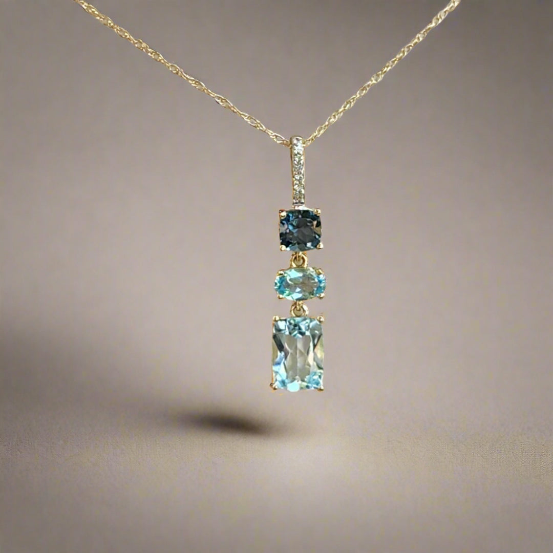 10k Gold Diamond and Shades of Topaz Pendant Necklace