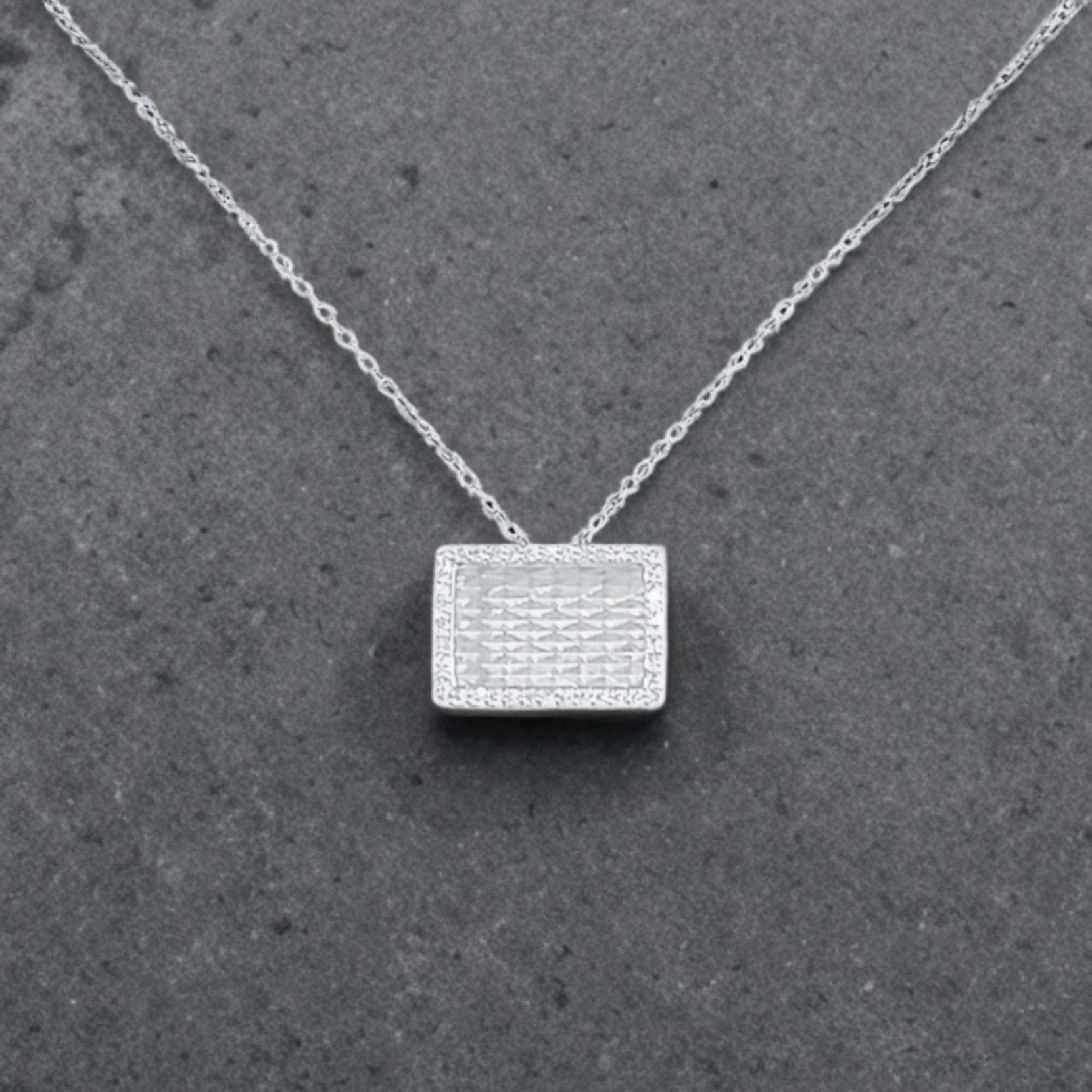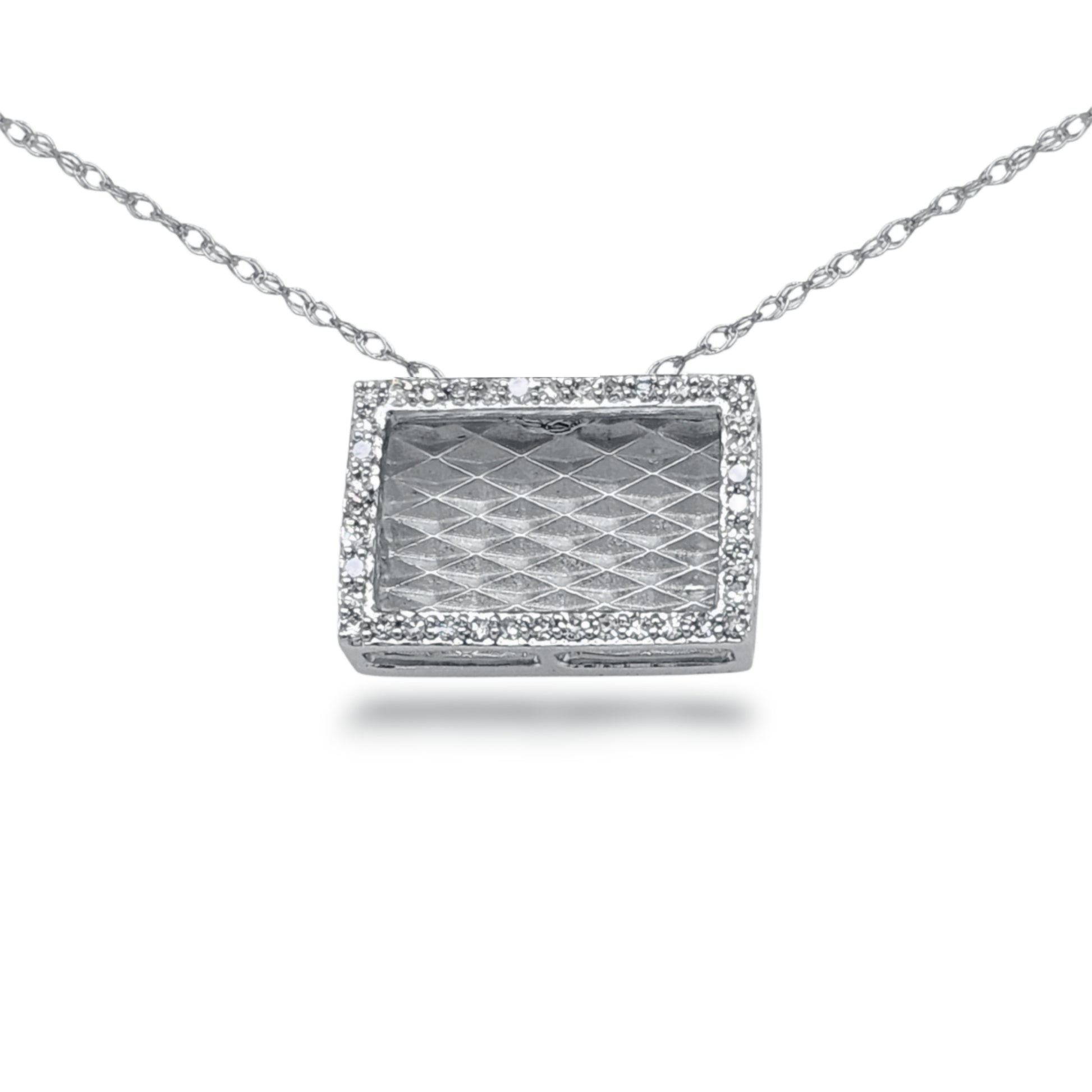 10K Gold Diamond Rectangle With Brushed Background Necklace