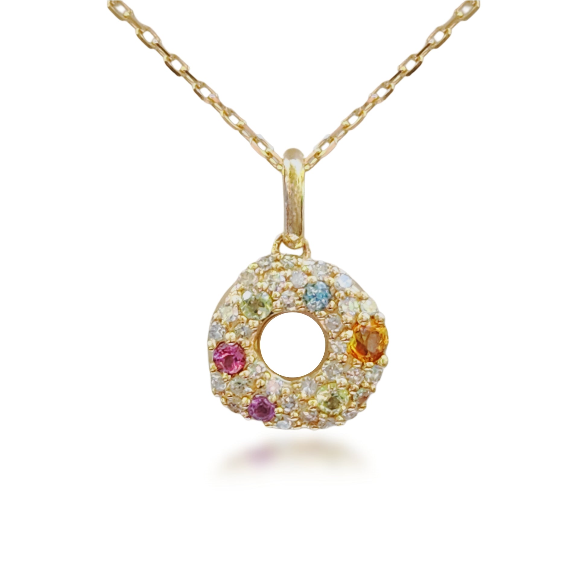 10k Gold Multicolor Sapphire Small Circle Necklace