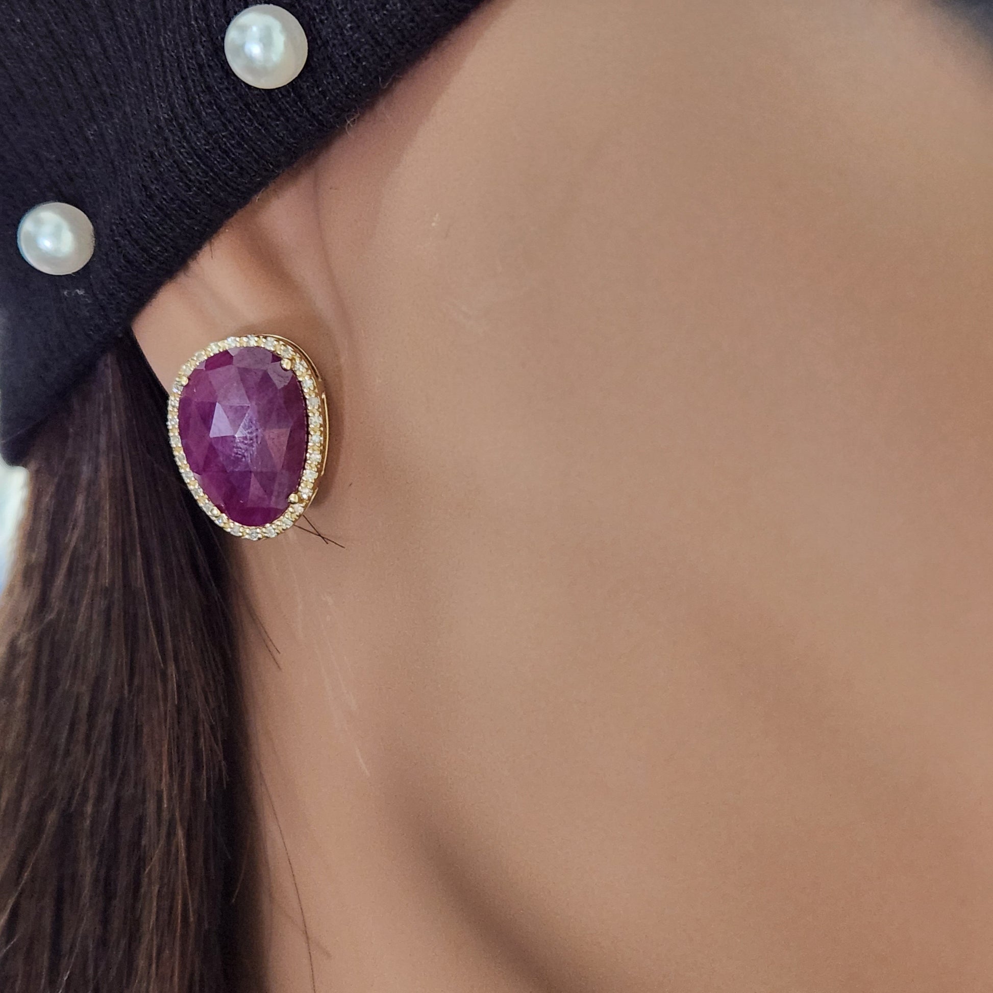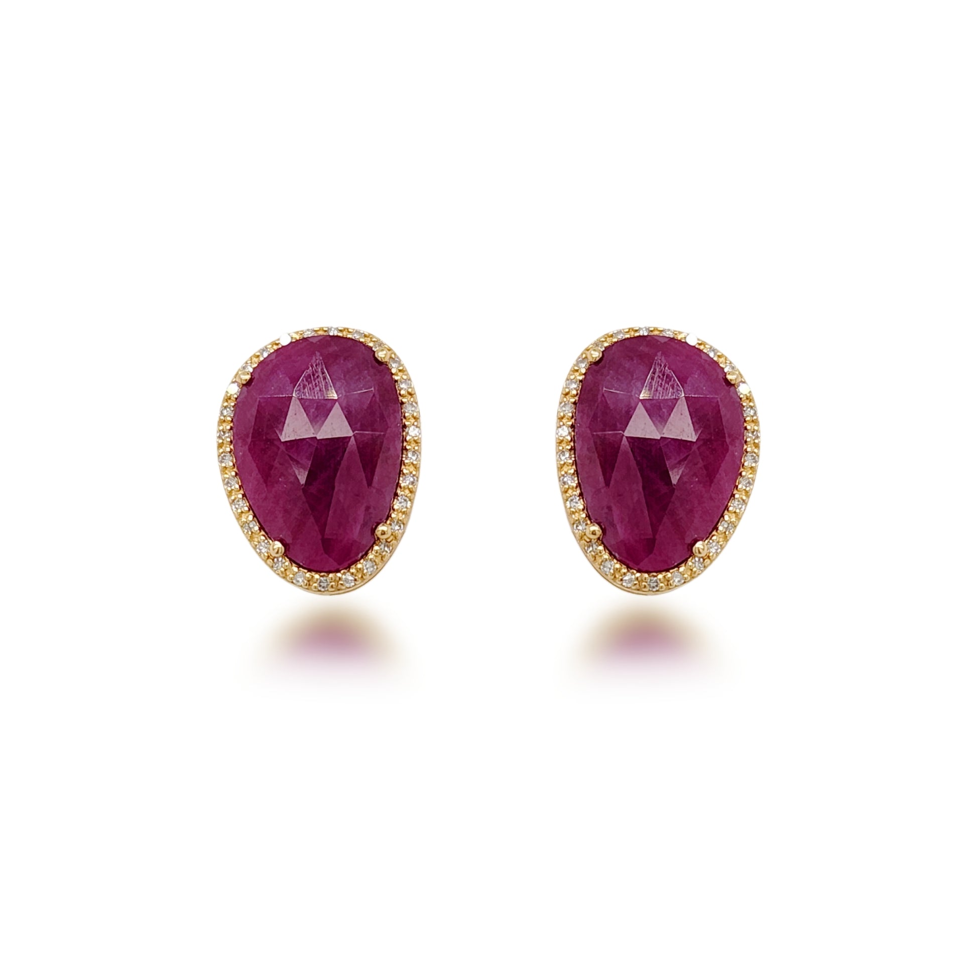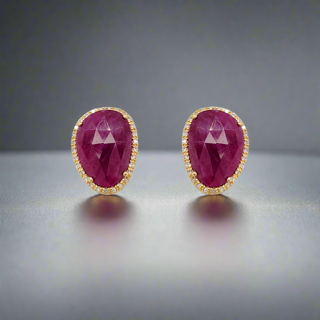 10K Gold Ruby and Diamond Natural Shaped Stud Earring
