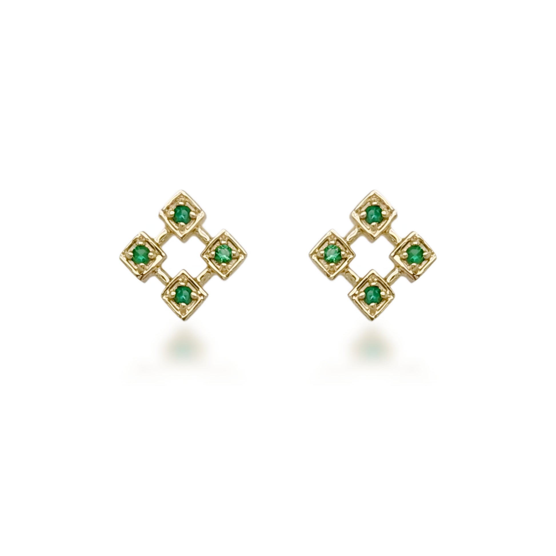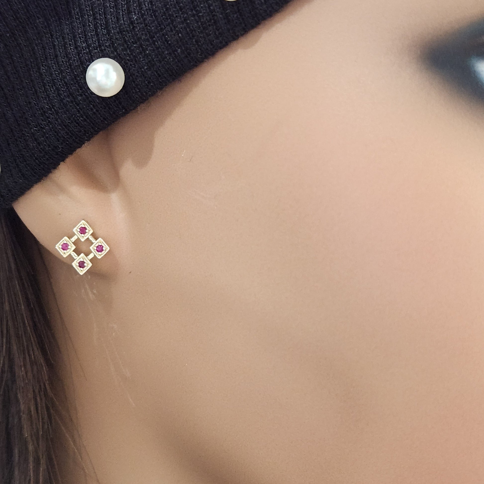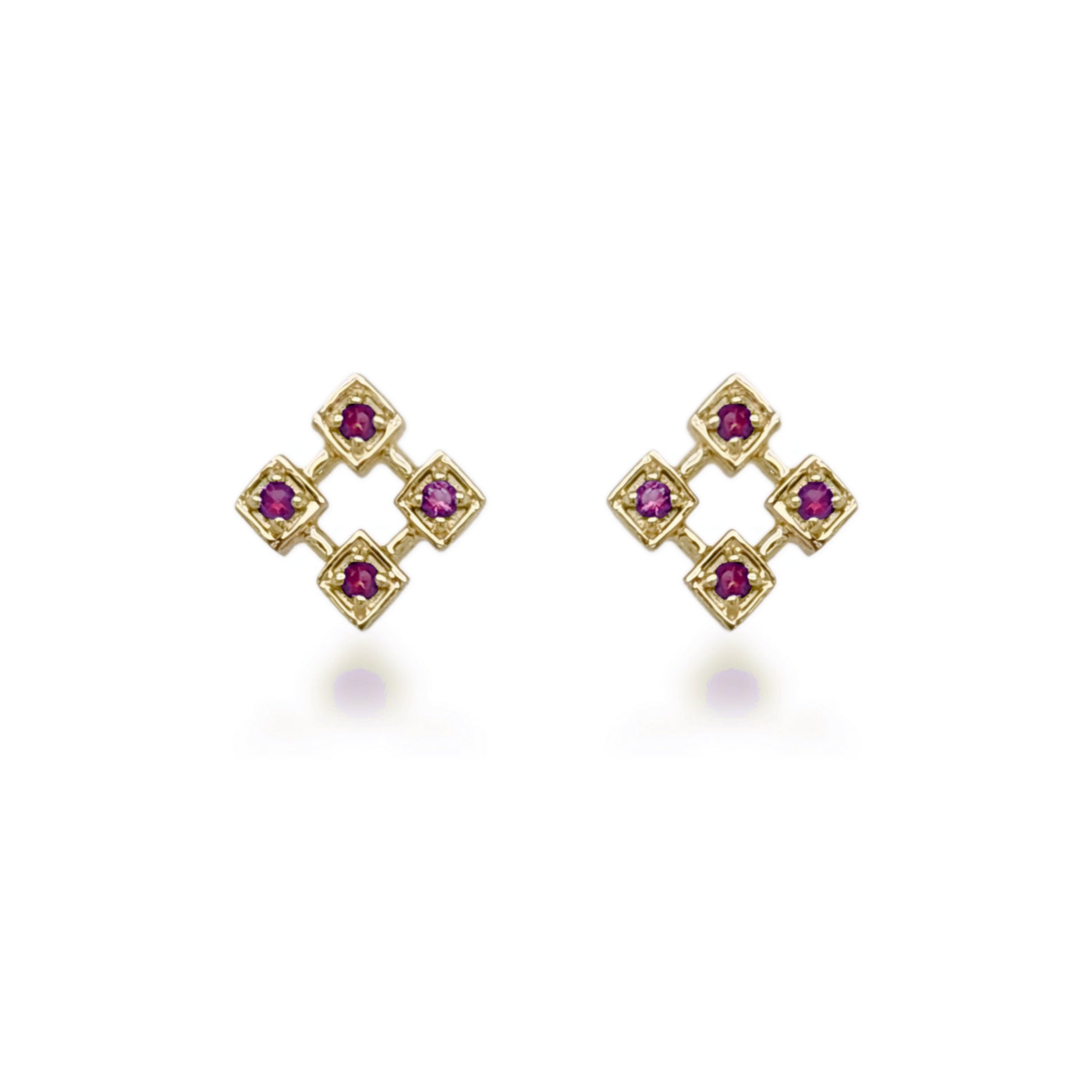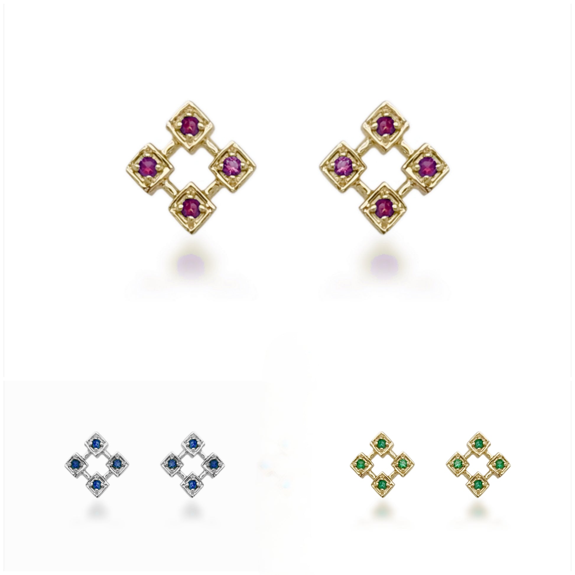 10K Ruby, Sapphire, or Emerald Diamond Shaped Stud Earrings