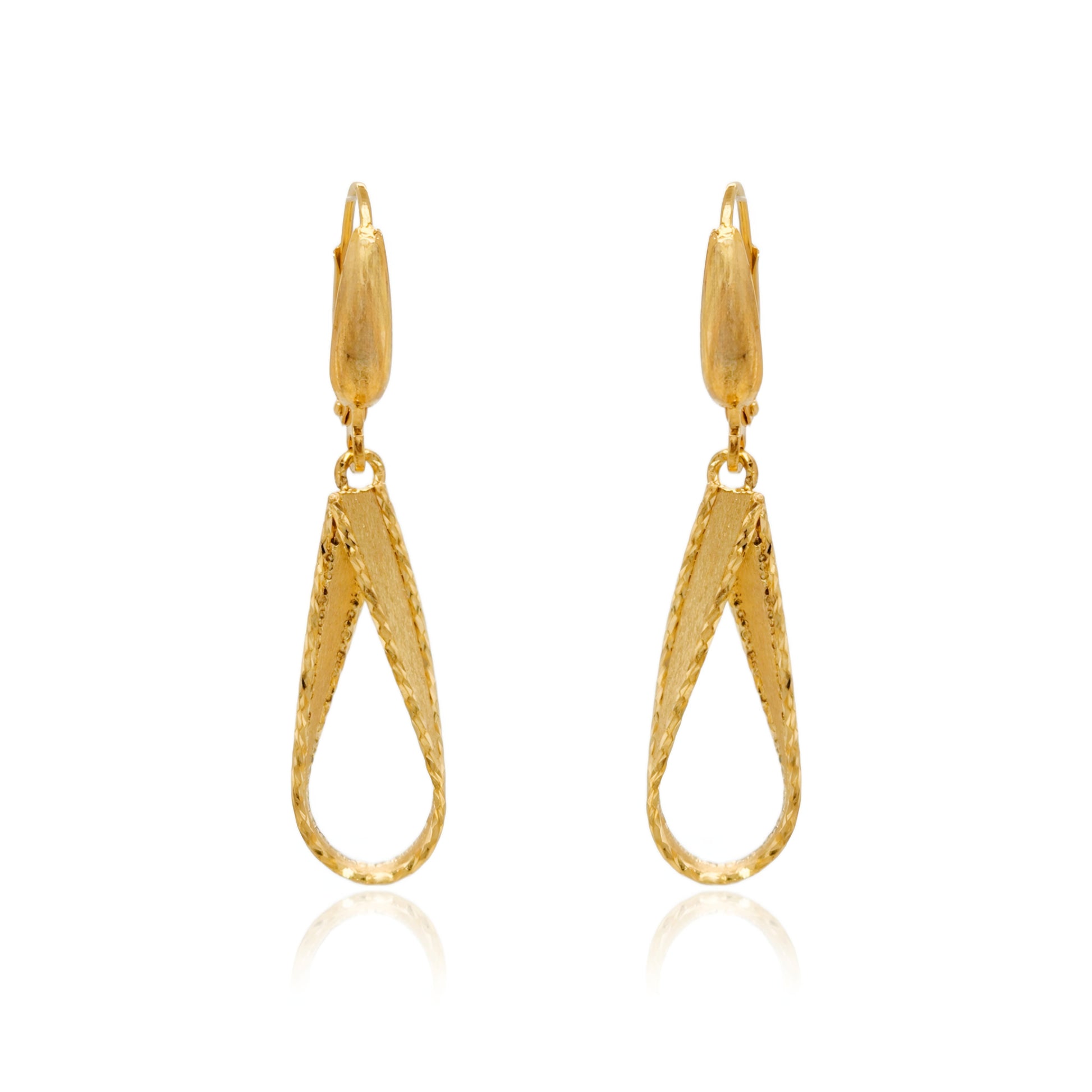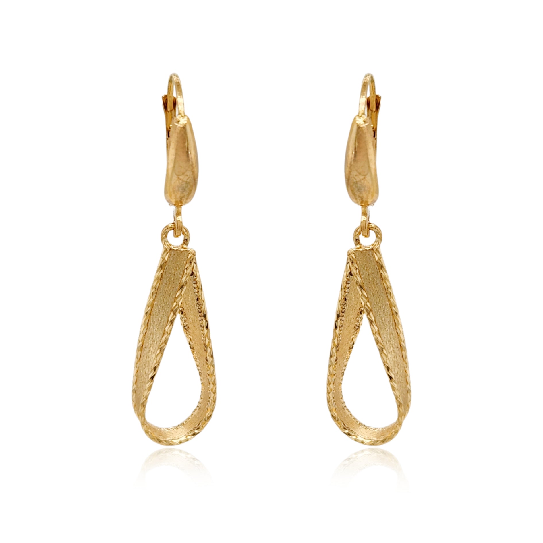 14K Brushed Gold and Diamond Cut Teardrop Earrings