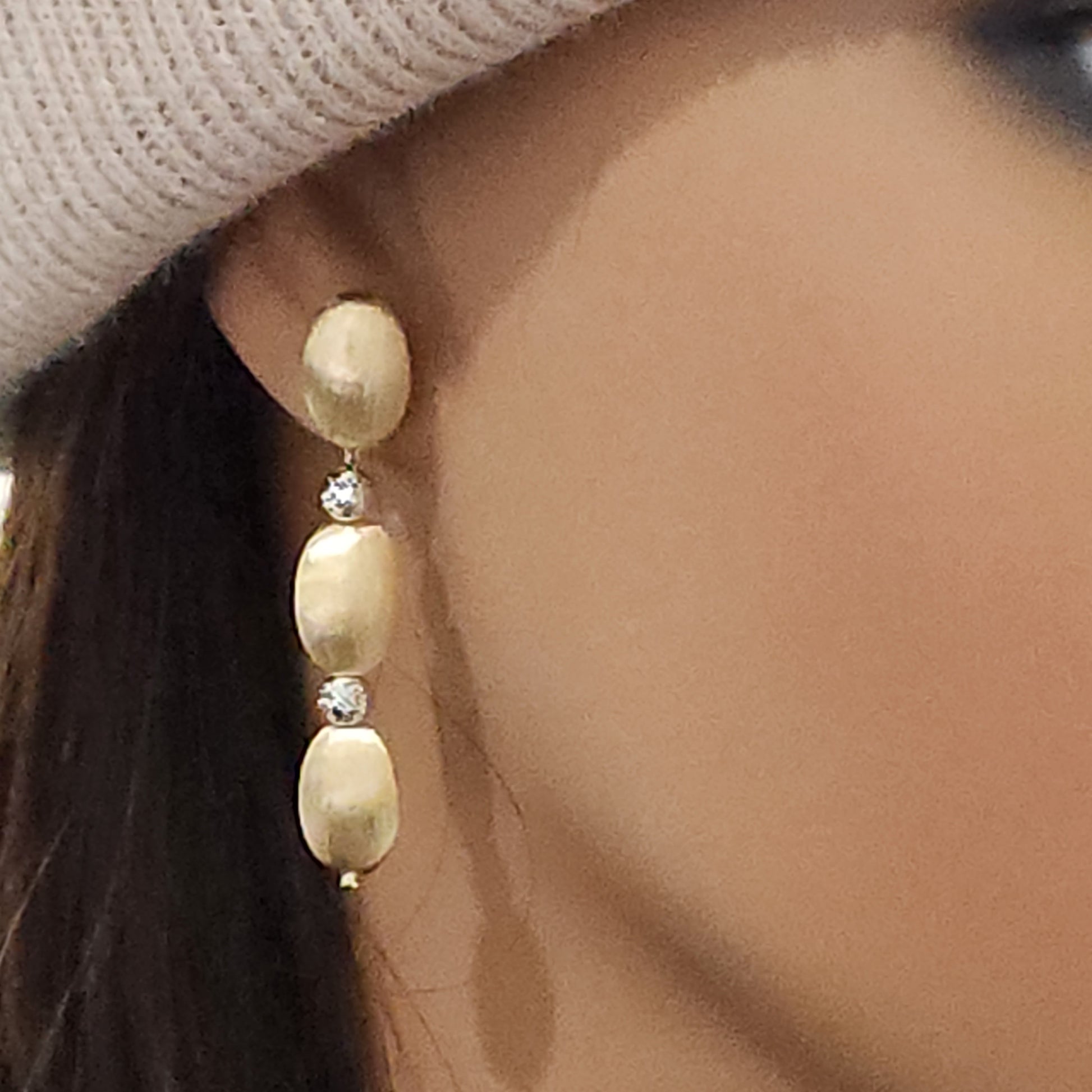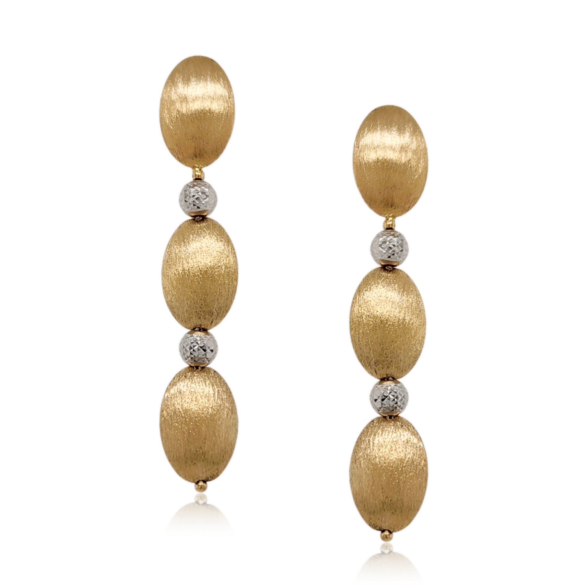 14K Brushed Gold Three Oval Diamond Cut Earrings