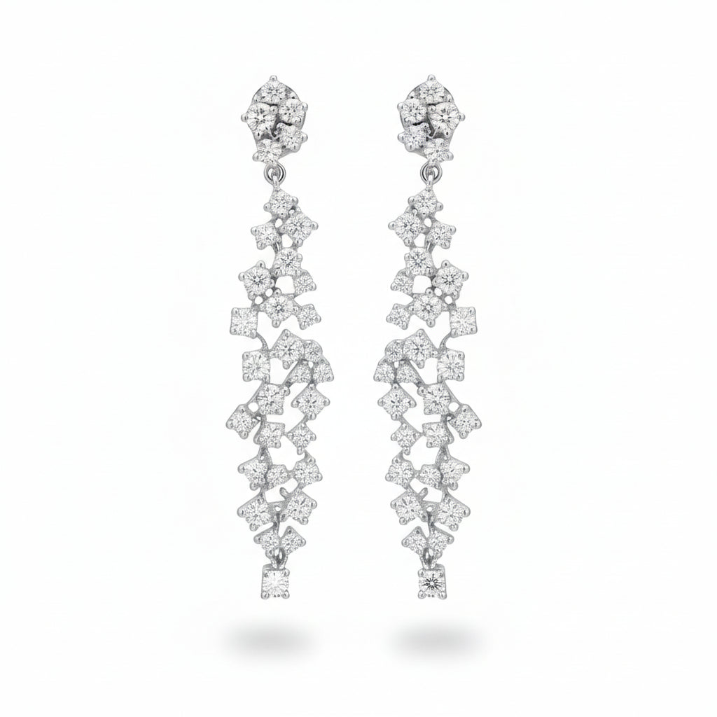 Expertly crafted in lustrous 14K gold, these earrings combine timeless sophistication with contemporary elegance. The cascading diamond clusters create mesmerizing movement and exceptional sparkle, making them the perfect choice for elevating special occasions or adding luxury to your everyday style.