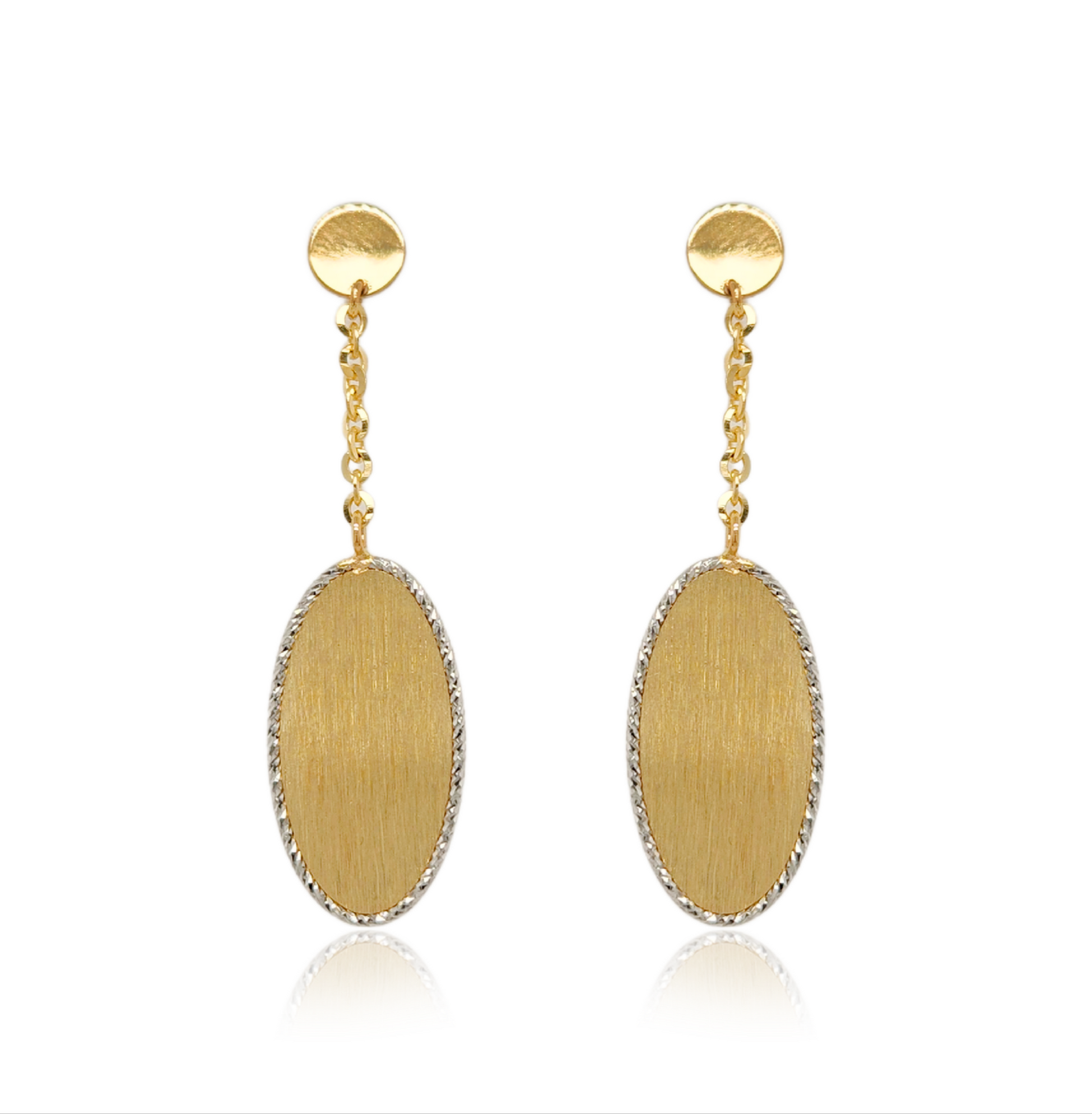 14K Gold Brushed Dangling Oval Diamond Cut Earrings
