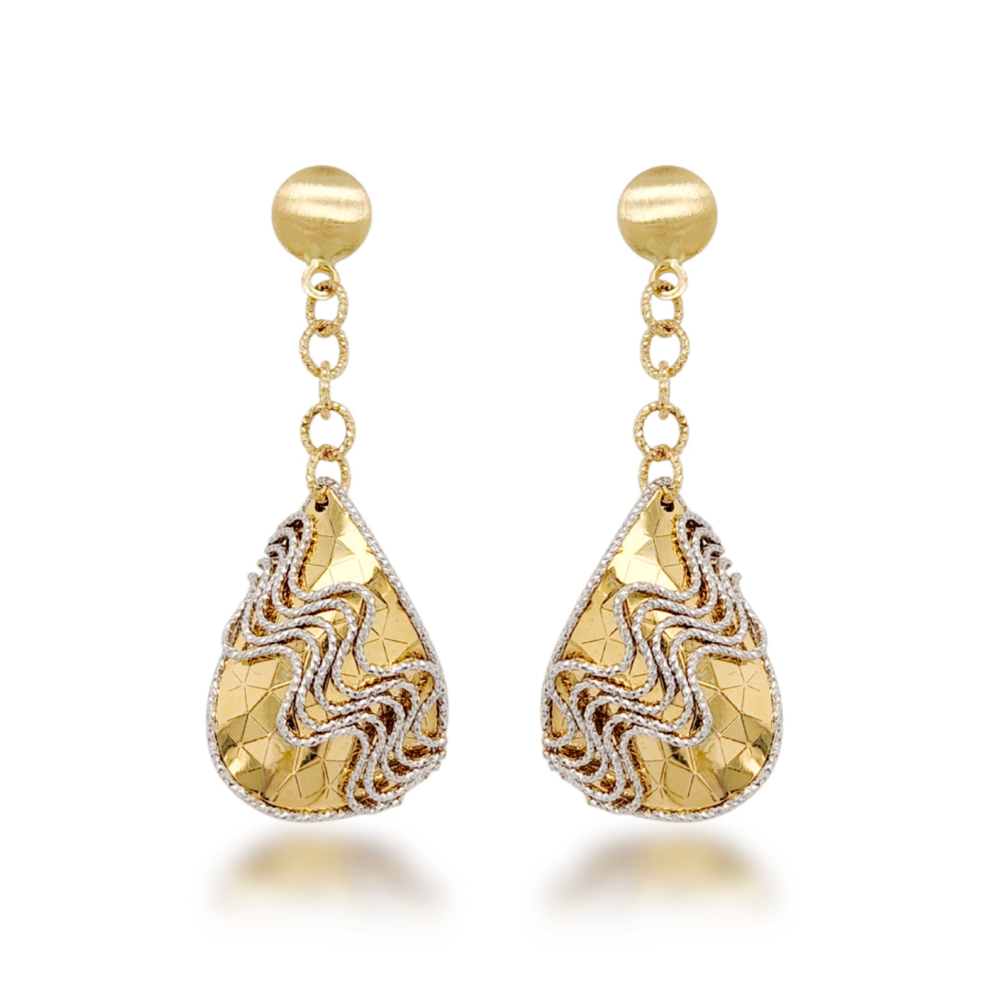14K Gold Dangling Teardrop with Diamond Cut Design Earrings