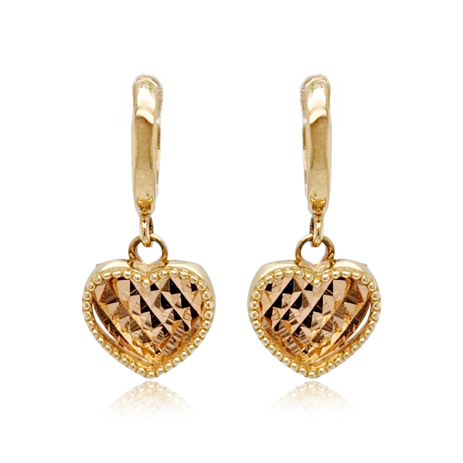 Looking for a charming pair of earrings? Check out our 14k Gold Diamond Cut Heart Hoop Earrings, perfect for adding some sparkle to your wardrobe. With a length of 3/4'', these earrings are sure to catch everyone's eye.