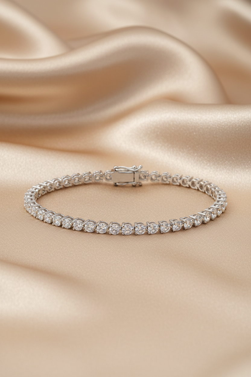 14k Gold Lab Grown Three Prong Tennis Bracelet