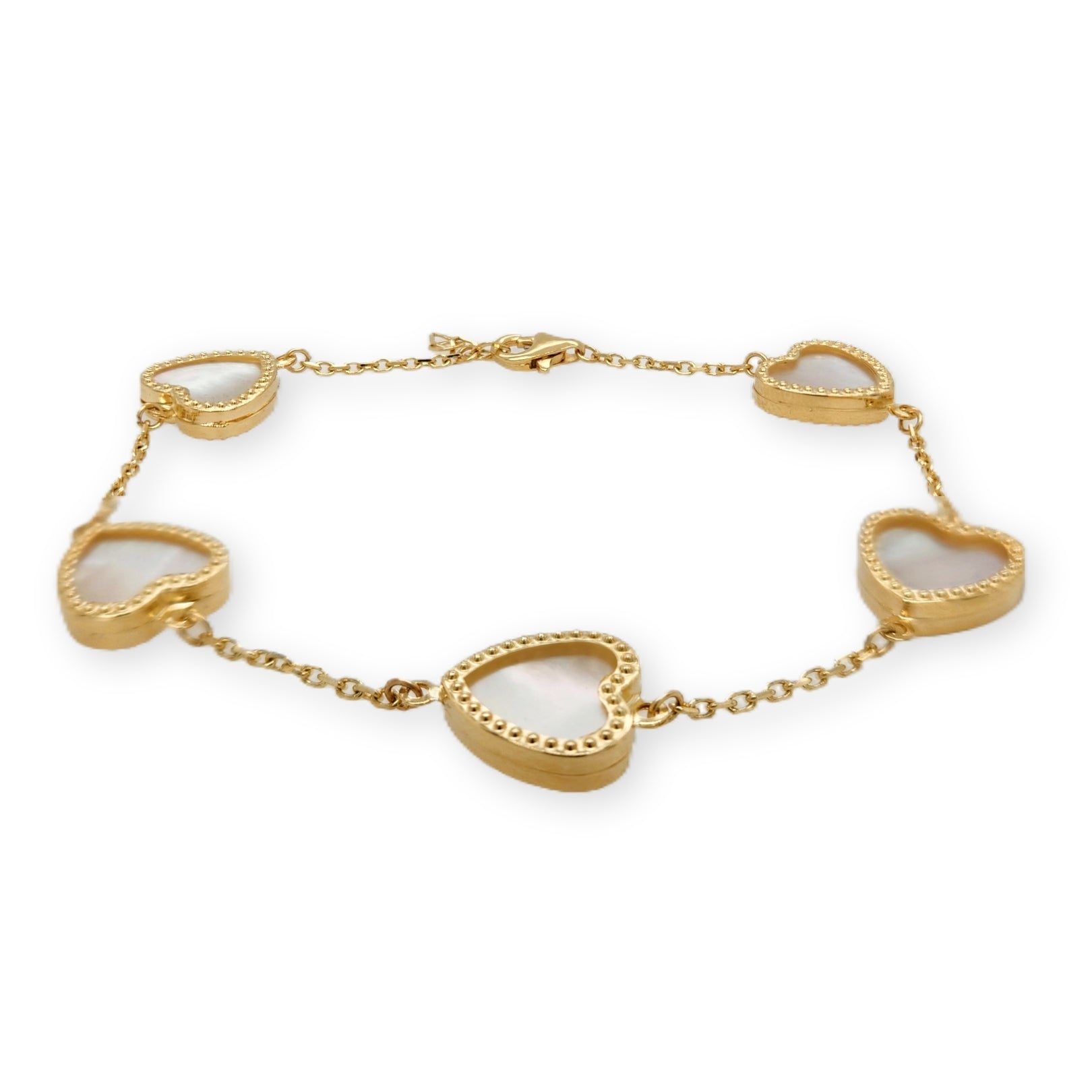 14k Gold Mother of Pearl Hearts With Beaded Border Bracelet