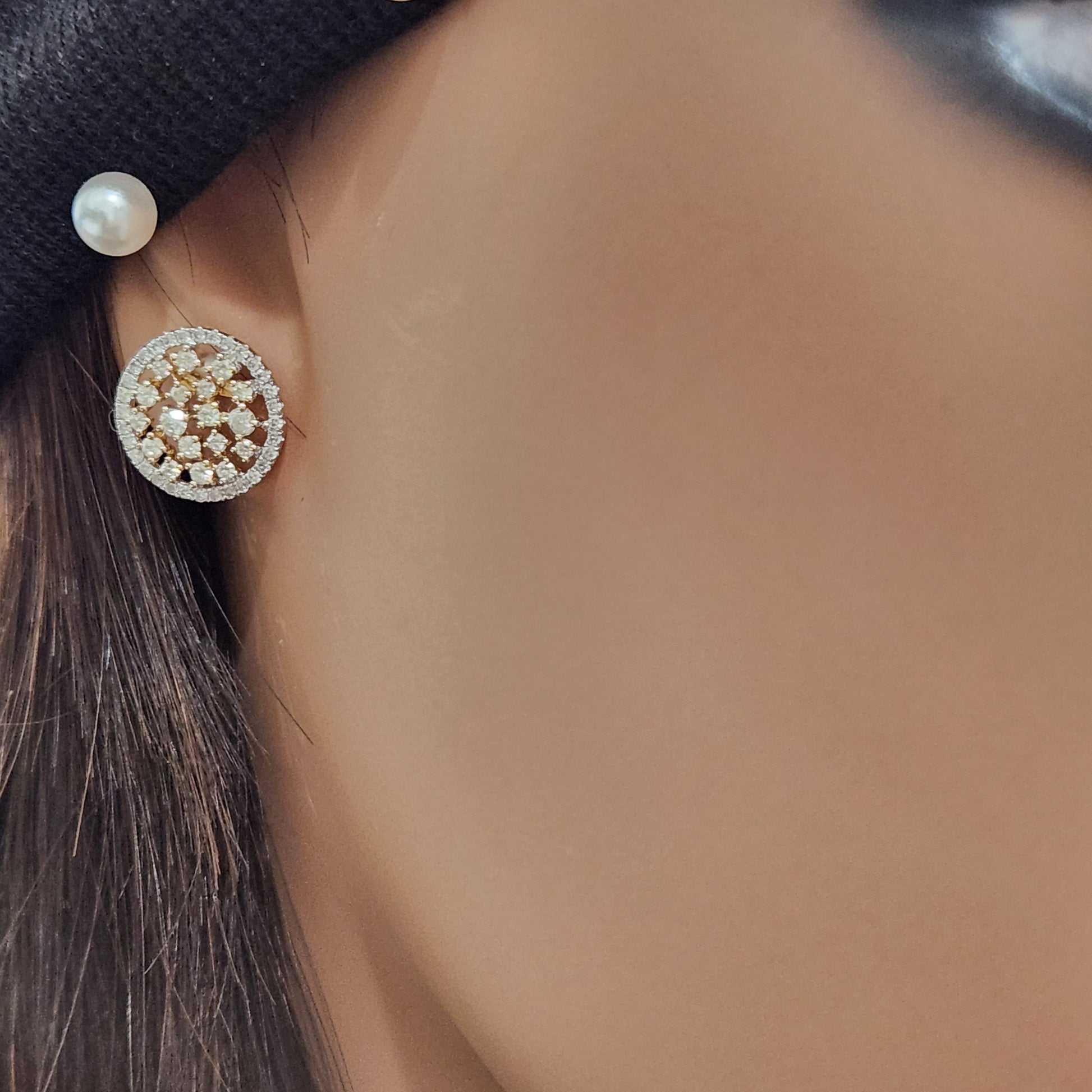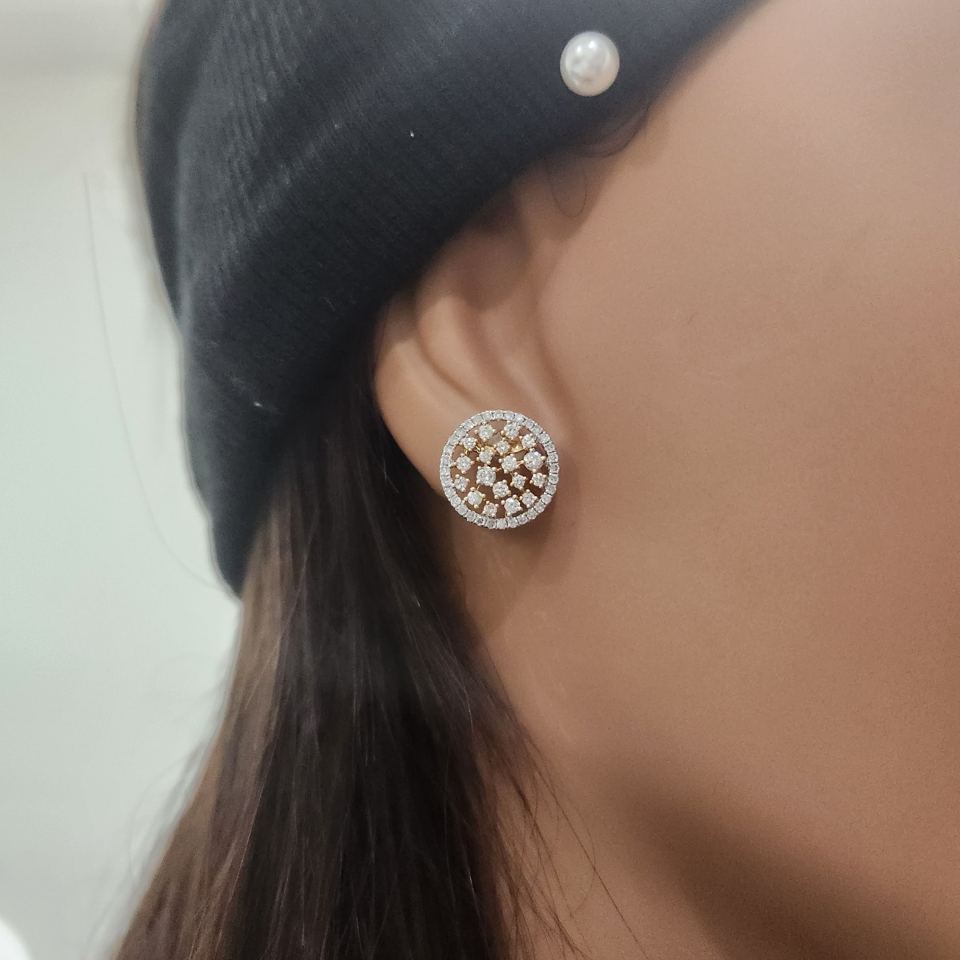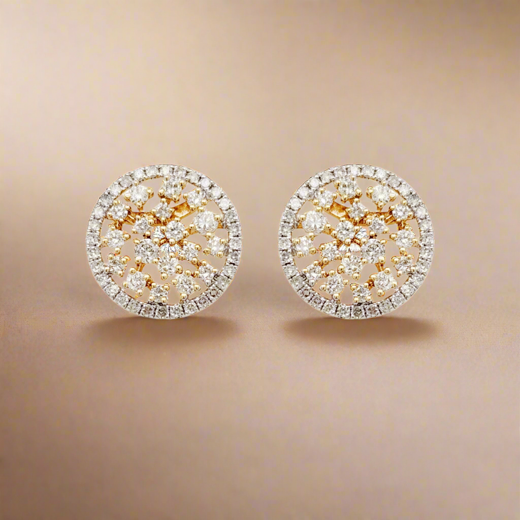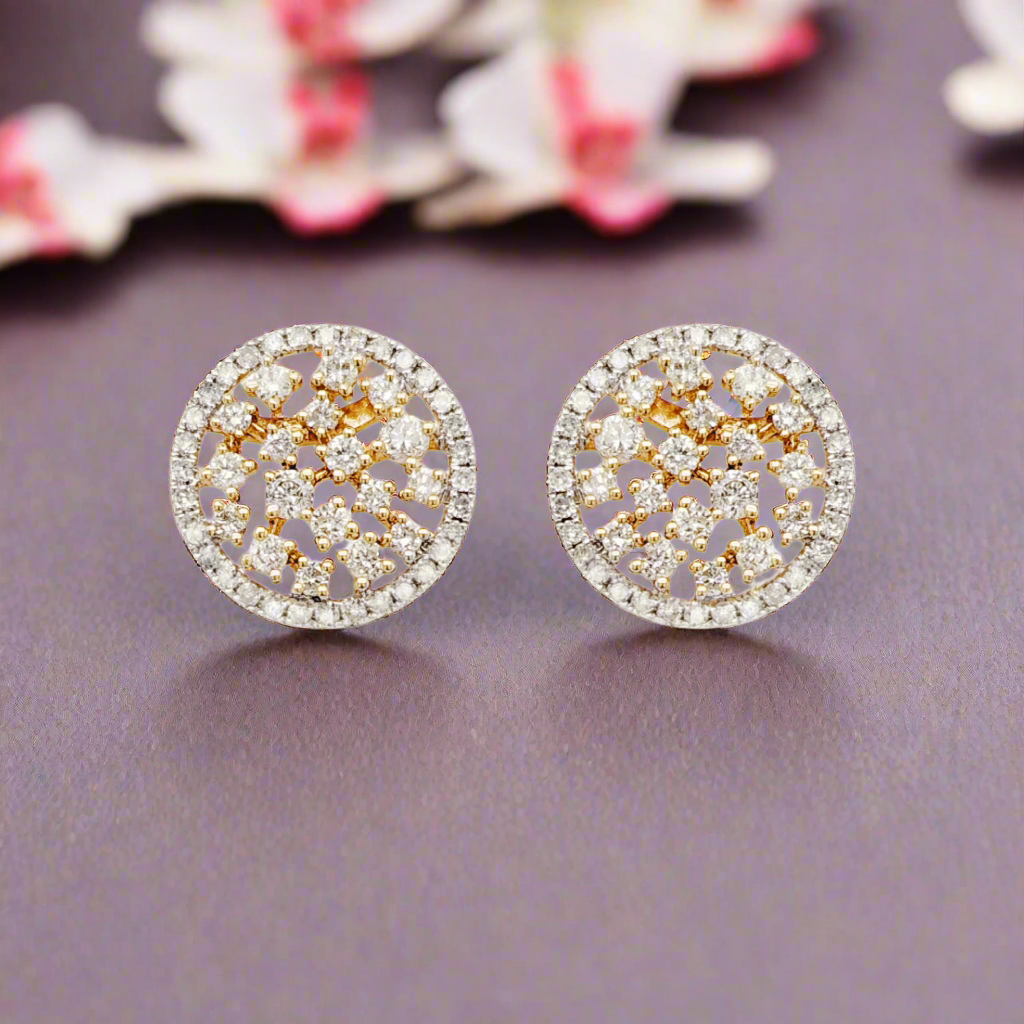 14K Gold Sprinkled Diamond Circle Stud Earrings