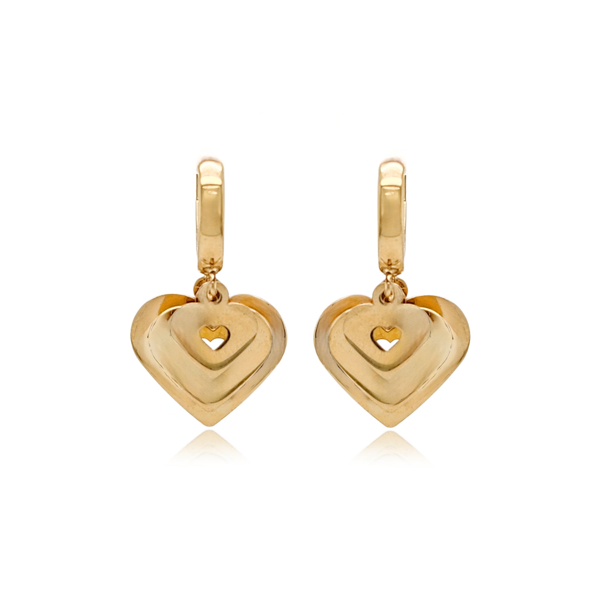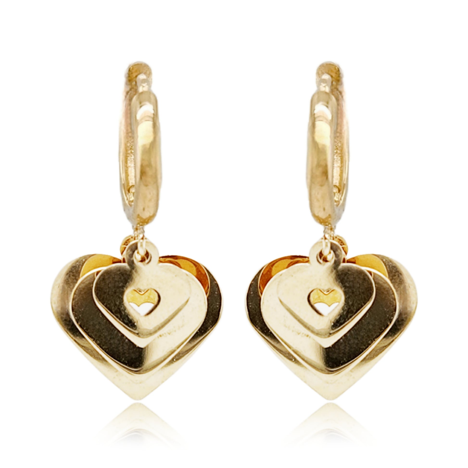 Experience the beauty of our 14K Gold Triple Heart on Hoop Earring, measuring 1'' in length. Elevate your look with these elegant and versatile earrings that will surely capture hearts.