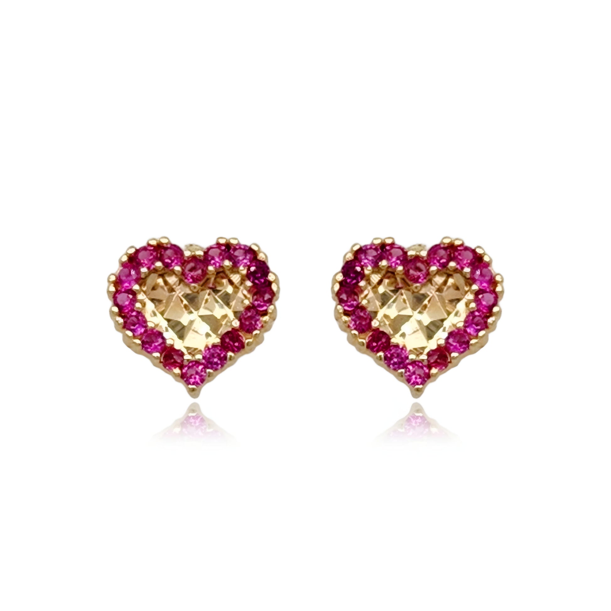Adorn your child's ears with a touch of sparkle with these charming 14k Gold CZ Border Heart Stud Earrings in Fuchsia. The screw back design ensures they stay securely in place, making them perfect for everyday wear.