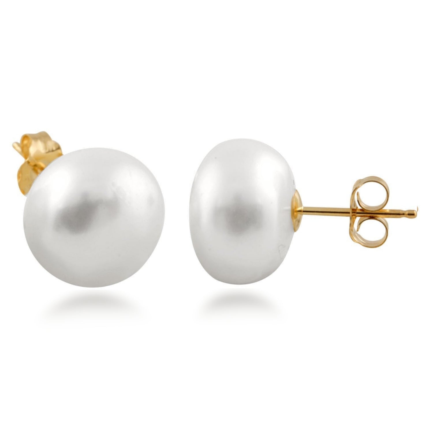Freshwater Button Pearl Studs With 14k Gold Earring Backs