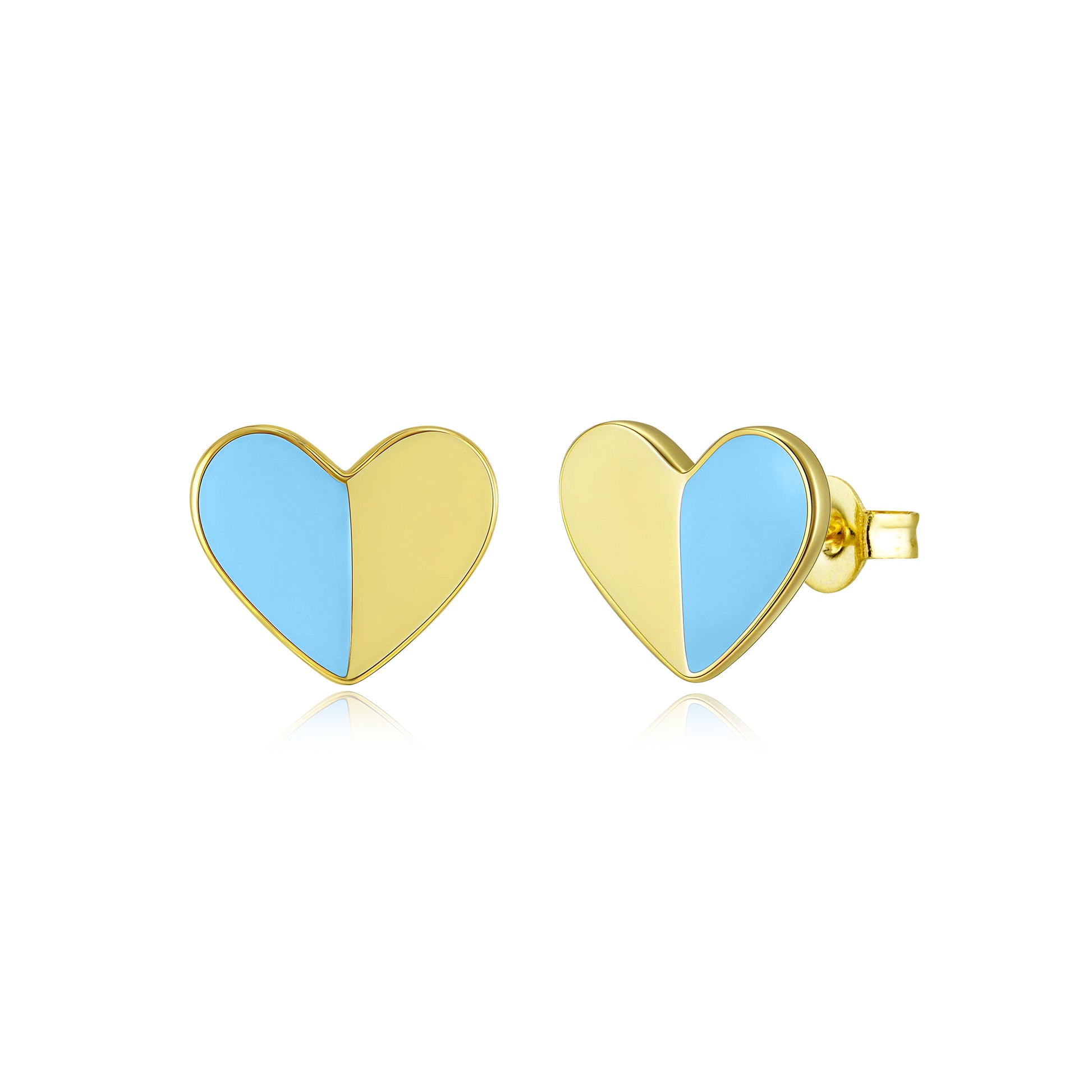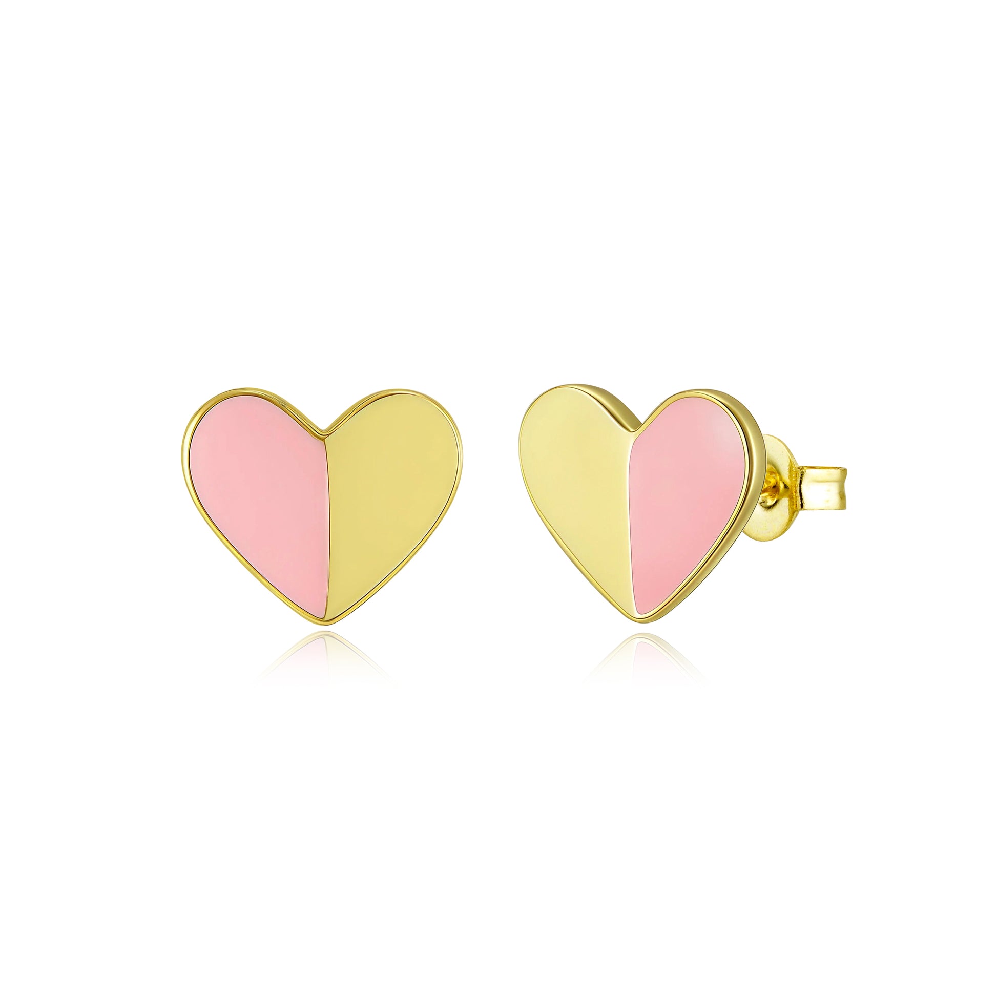Delight in these charming gold-plated surgical steel stud earrings featuring a unique half-enamel heart design. The vibrant enamel creates a sweet two-tone look that's perfect for children and anyone who loves playful, colorful jewelry.