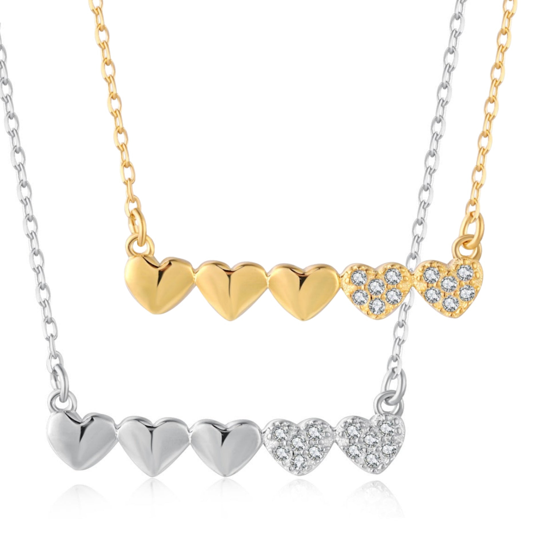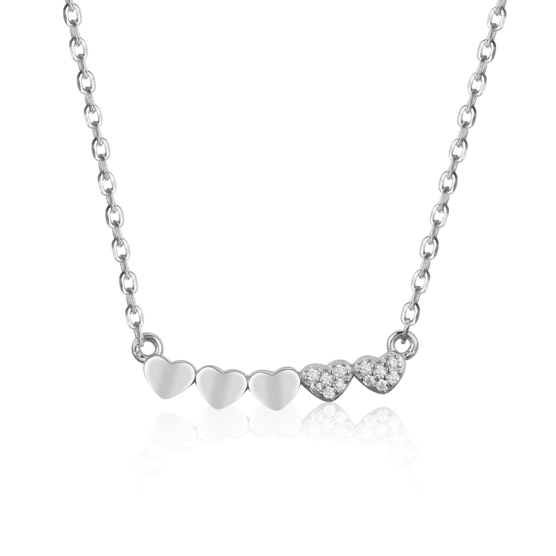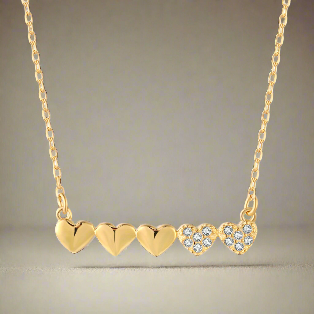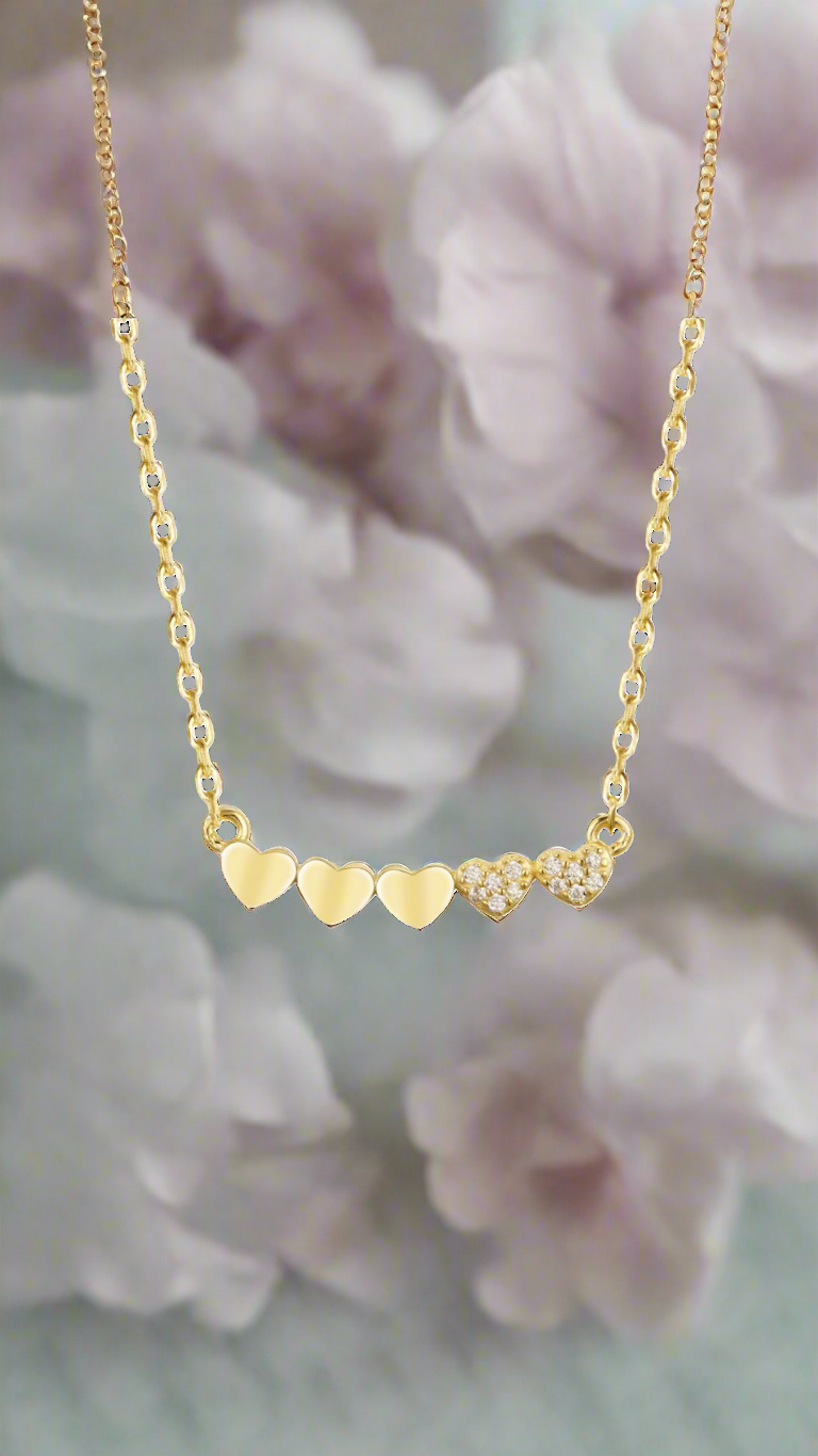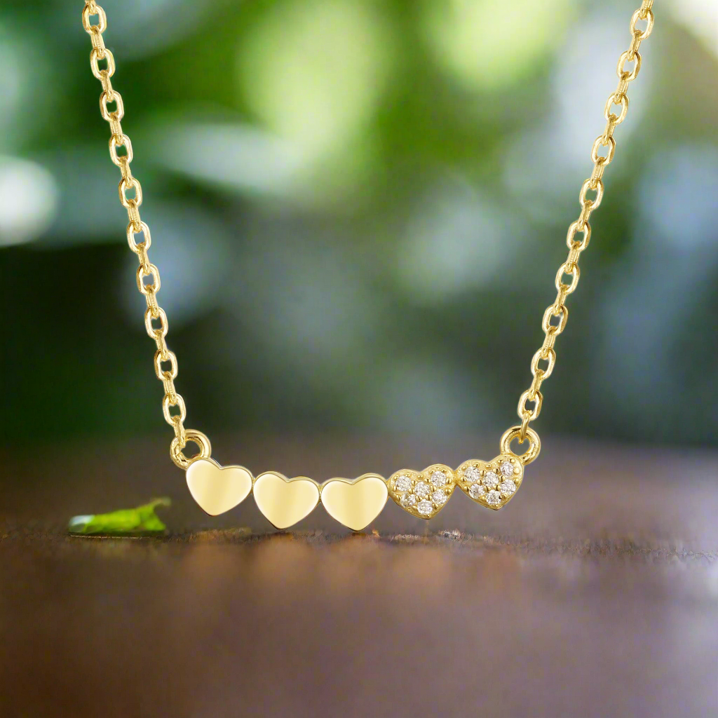 Gold-plated or Rhodium-plated Sterling Silver CZ Small Five Heart Bar Necklace