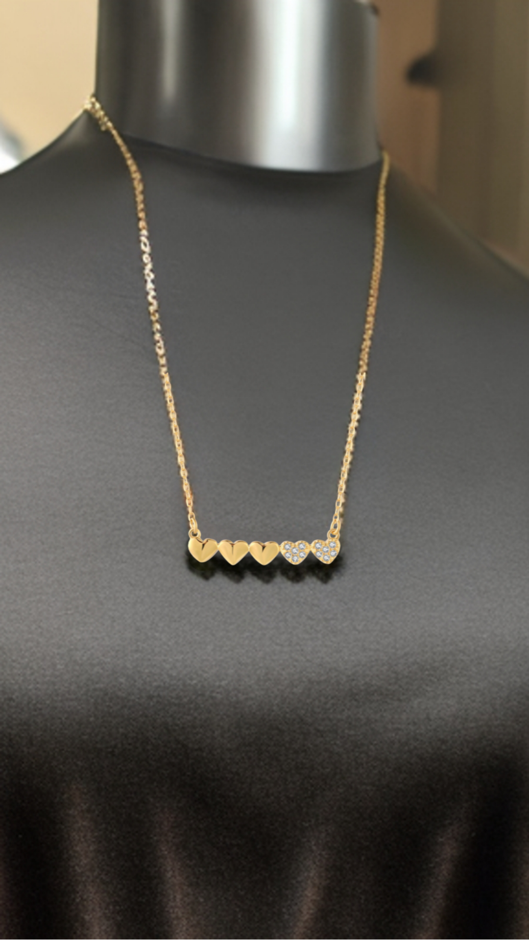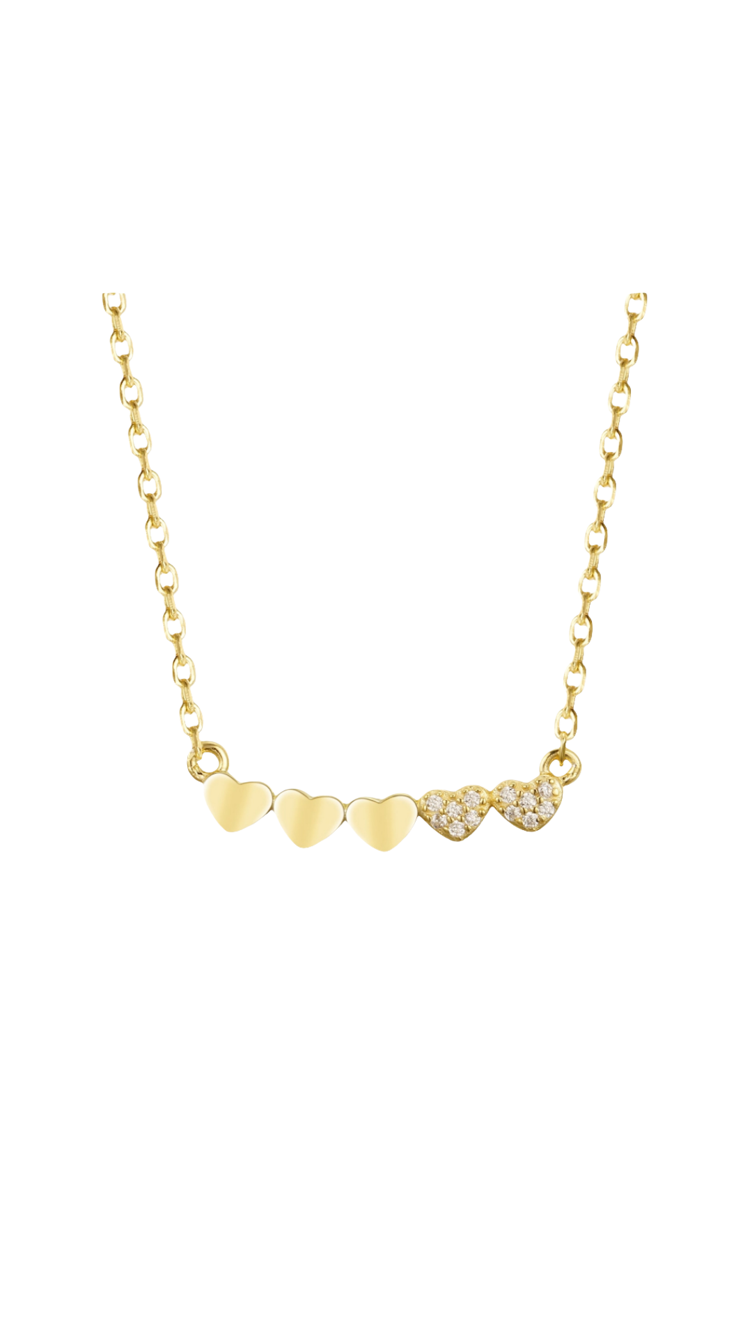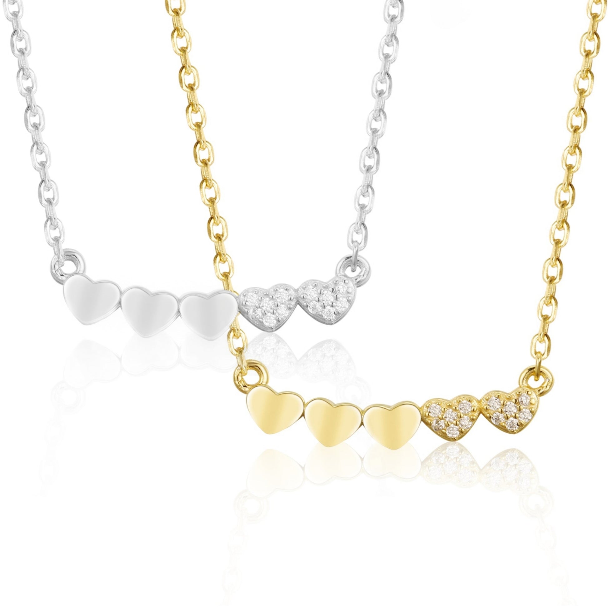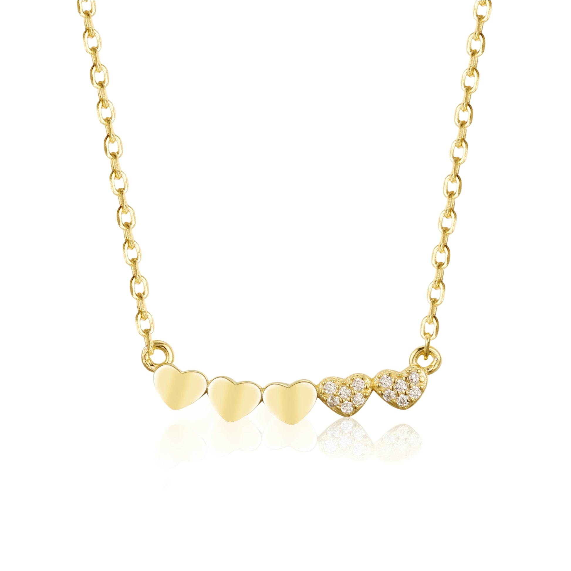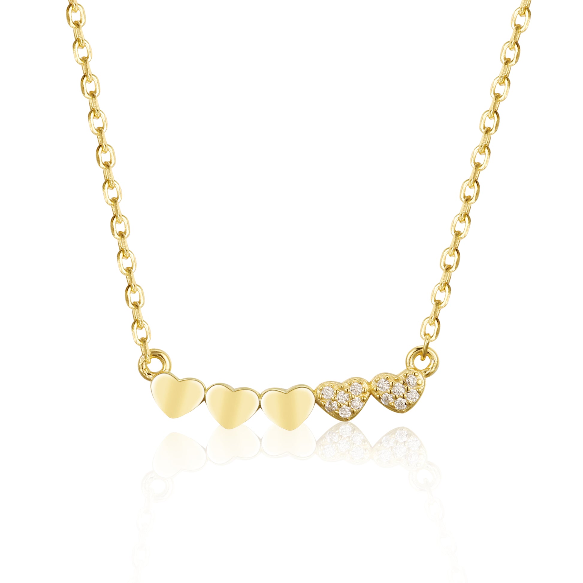 Gold-plated or Rhodium-plated Sterling Silver CZ Small Five Heart Bar Necklace
