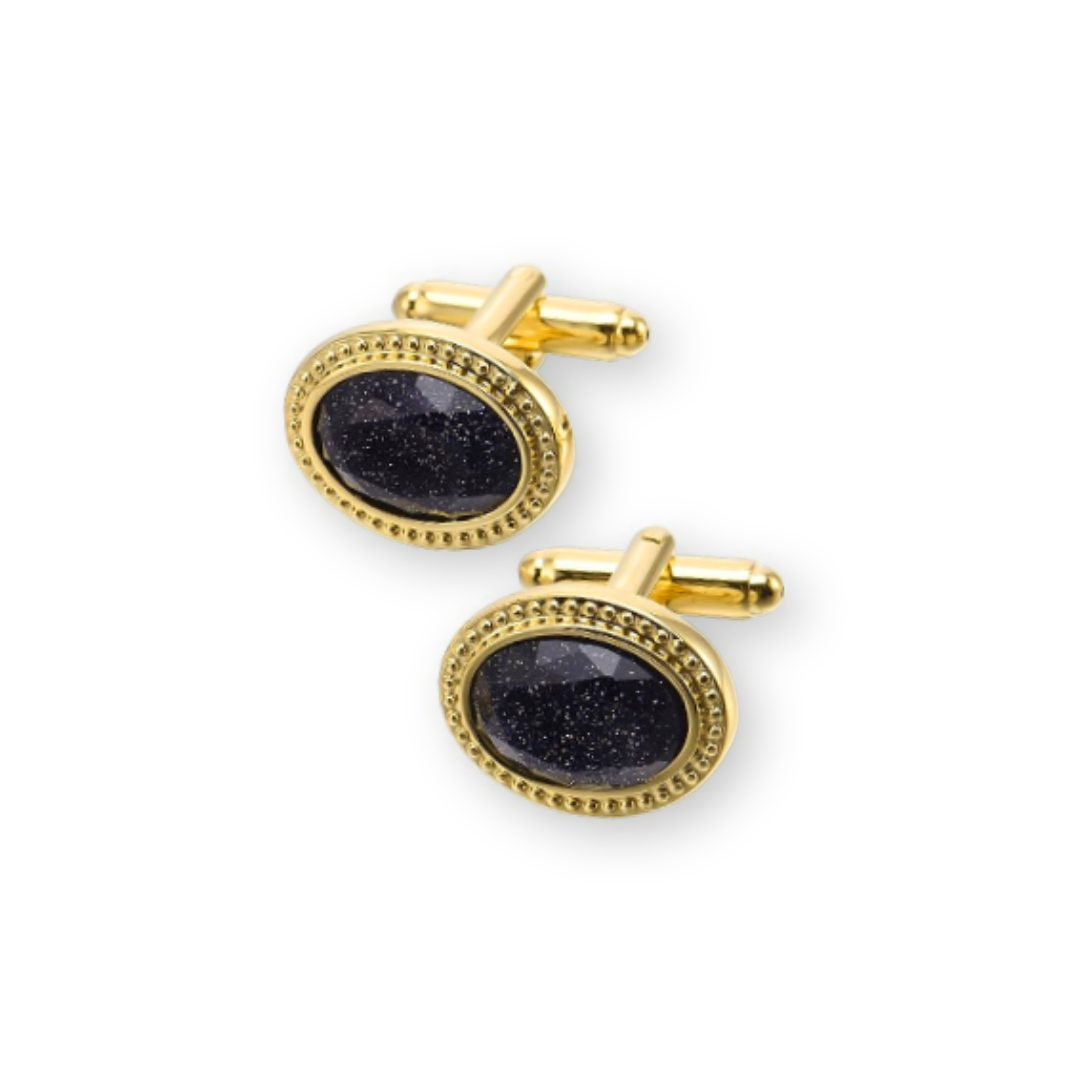 Gold-plated Oval Cufflinks with Sparkled Navy Center Stone