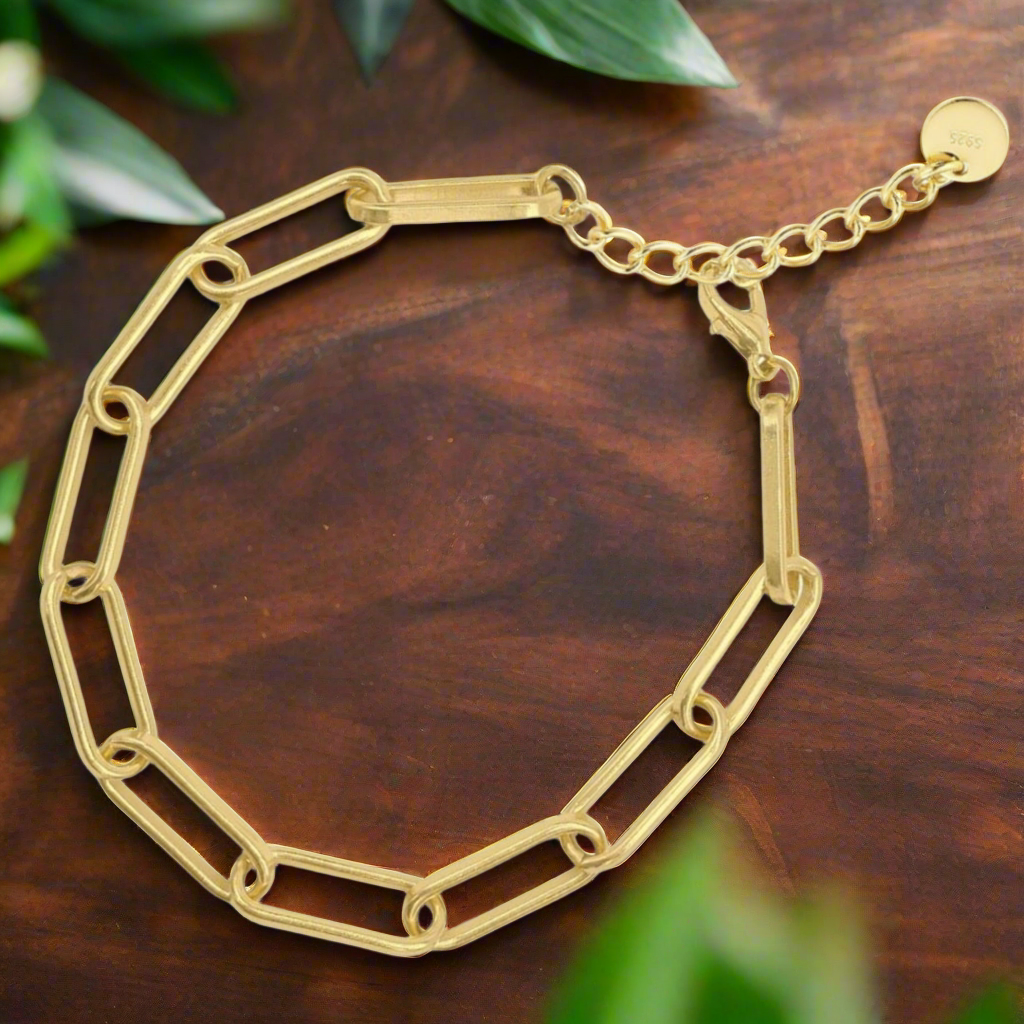 Gold Plated Sterling Silver Classic Paperclip Bracelet