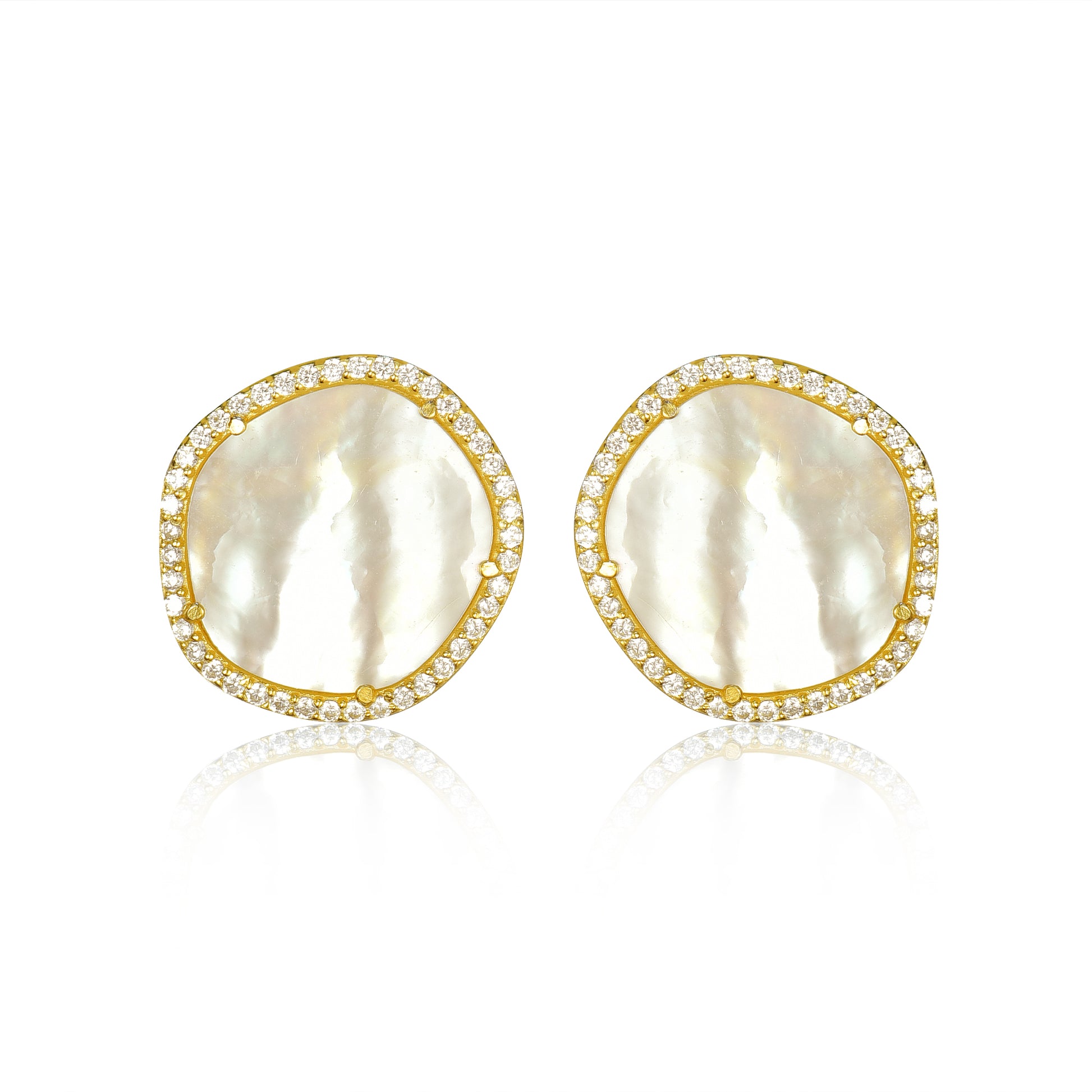 Gold-Plated Sterling Silver CZ Border With Mother of Pearl Natural Shape Stud Earrings