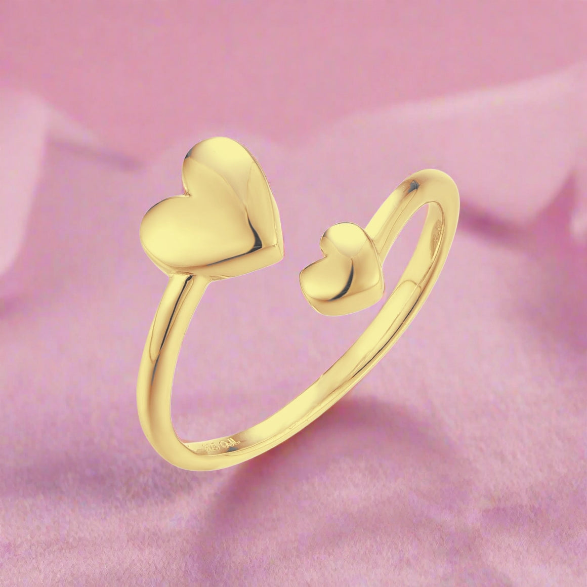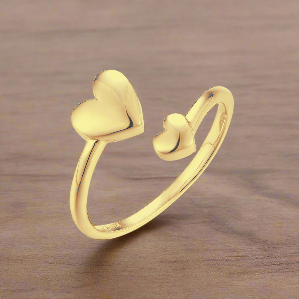 Looking for a unique and playful addition to your jewelry collection? Check out our Gold Plated Sterling Silver Double Heart Ring, available in sizes 3-8 and with micron plating! Don't miss out on this charming and stylish piece.