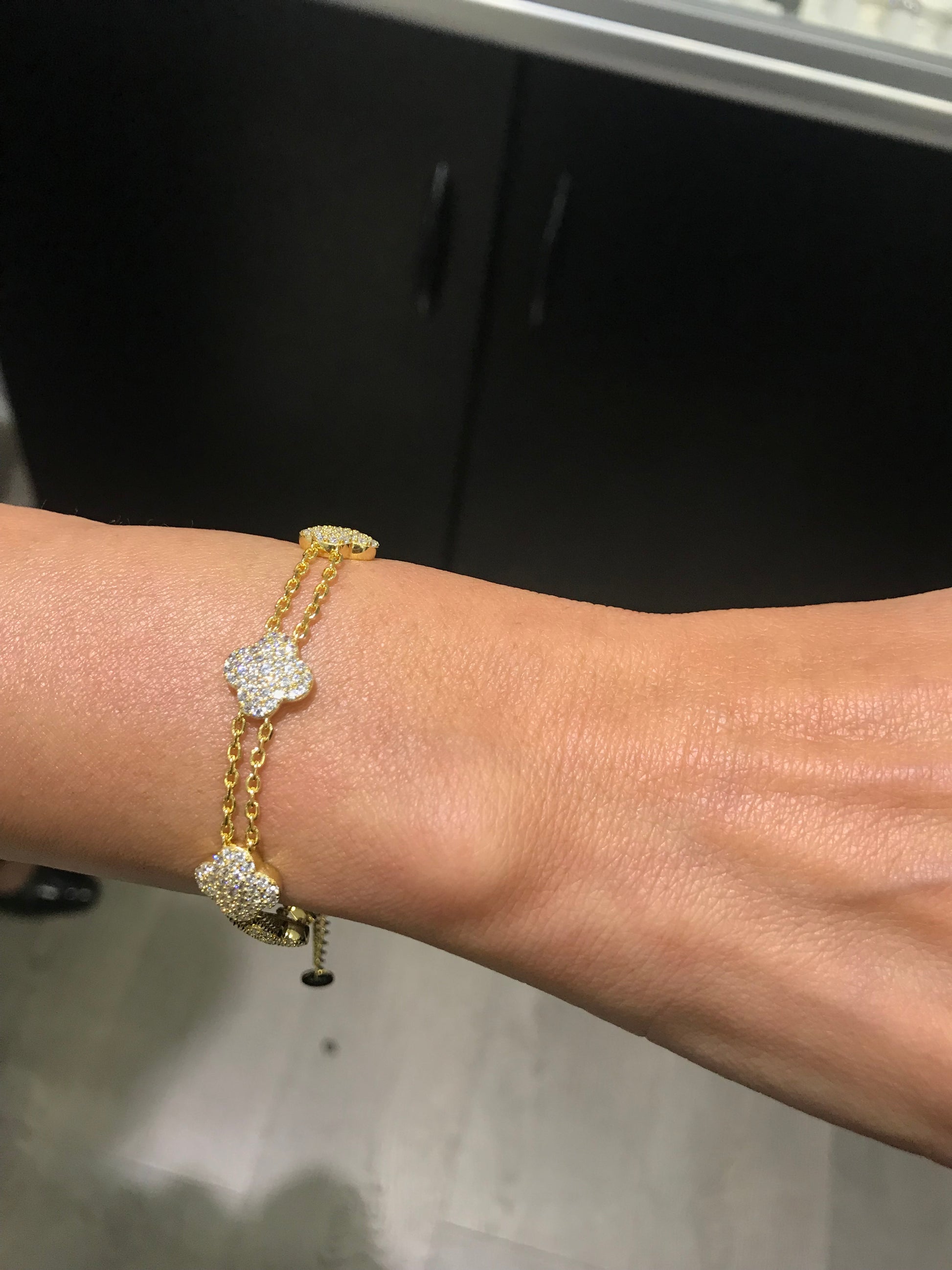 Gold Plated Sterling Silver Double Strand CZ Clover Bracelet
