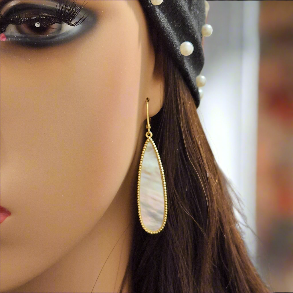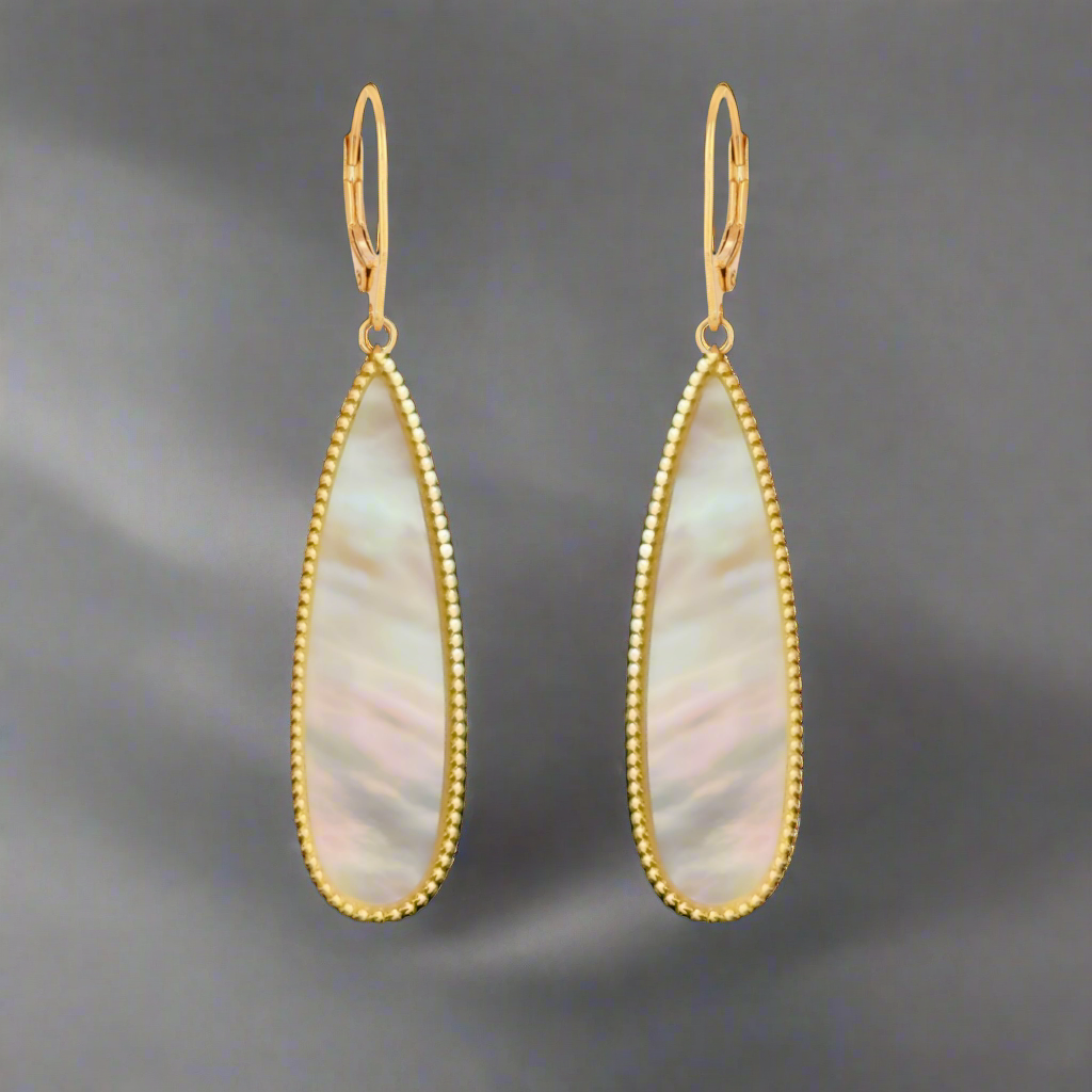 Gold Plated Sterling Silver Mother of Pearl Teardrop on Leverback Earring
