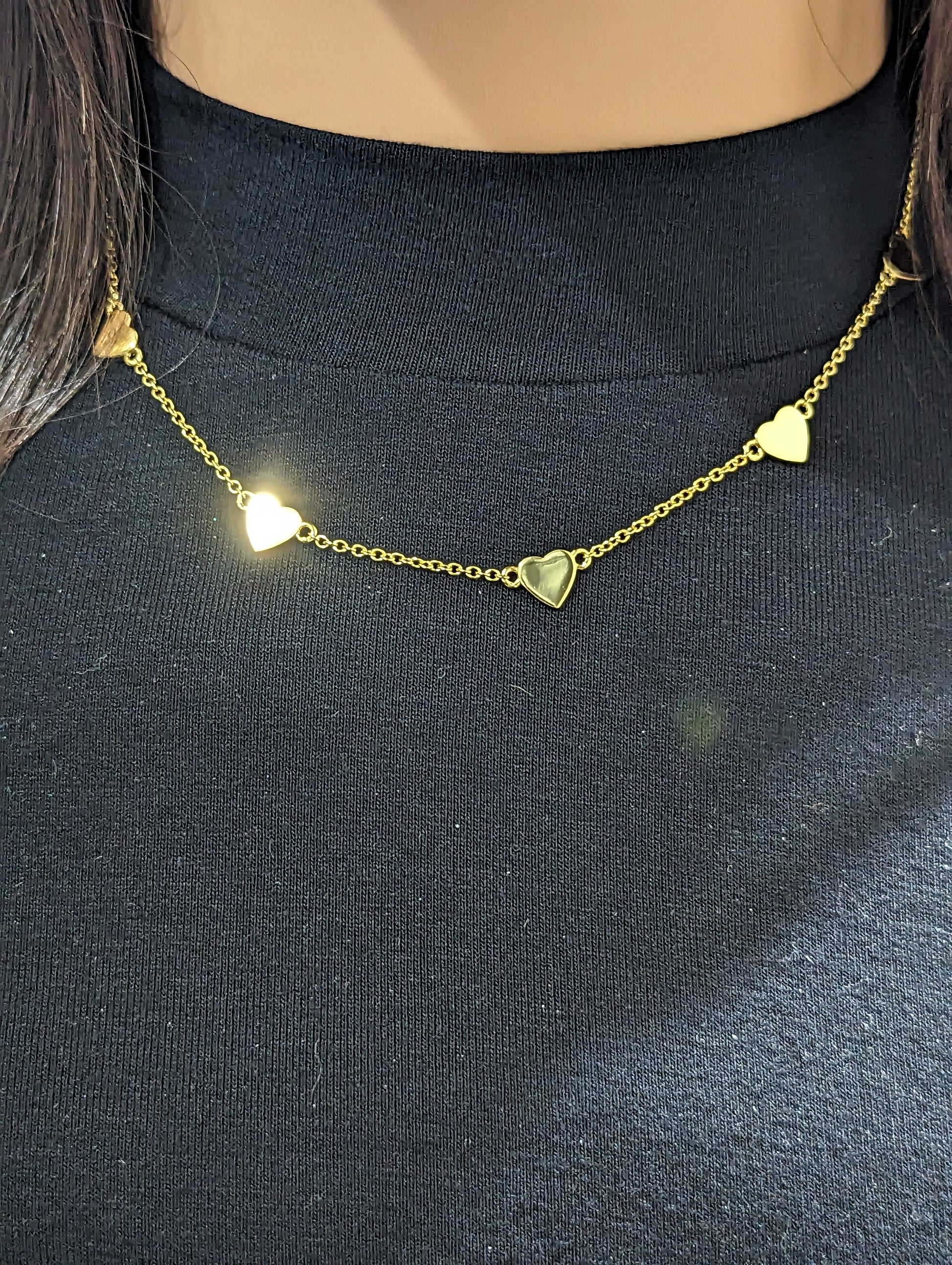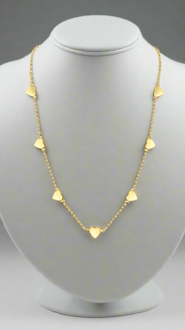 Gold Plated Sterling Silver Shiny Heart Station Necklace