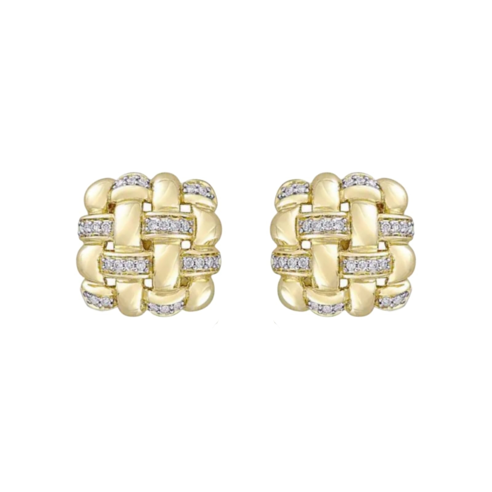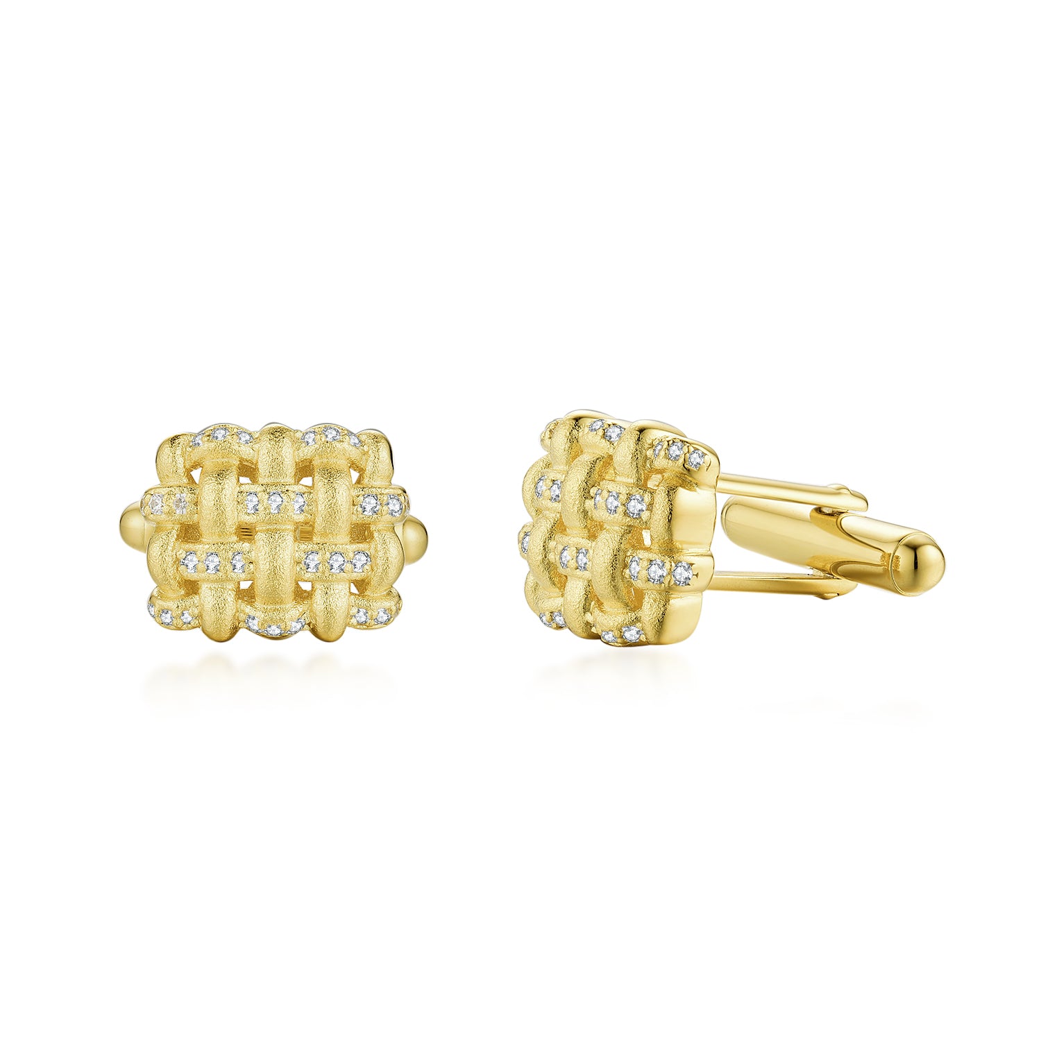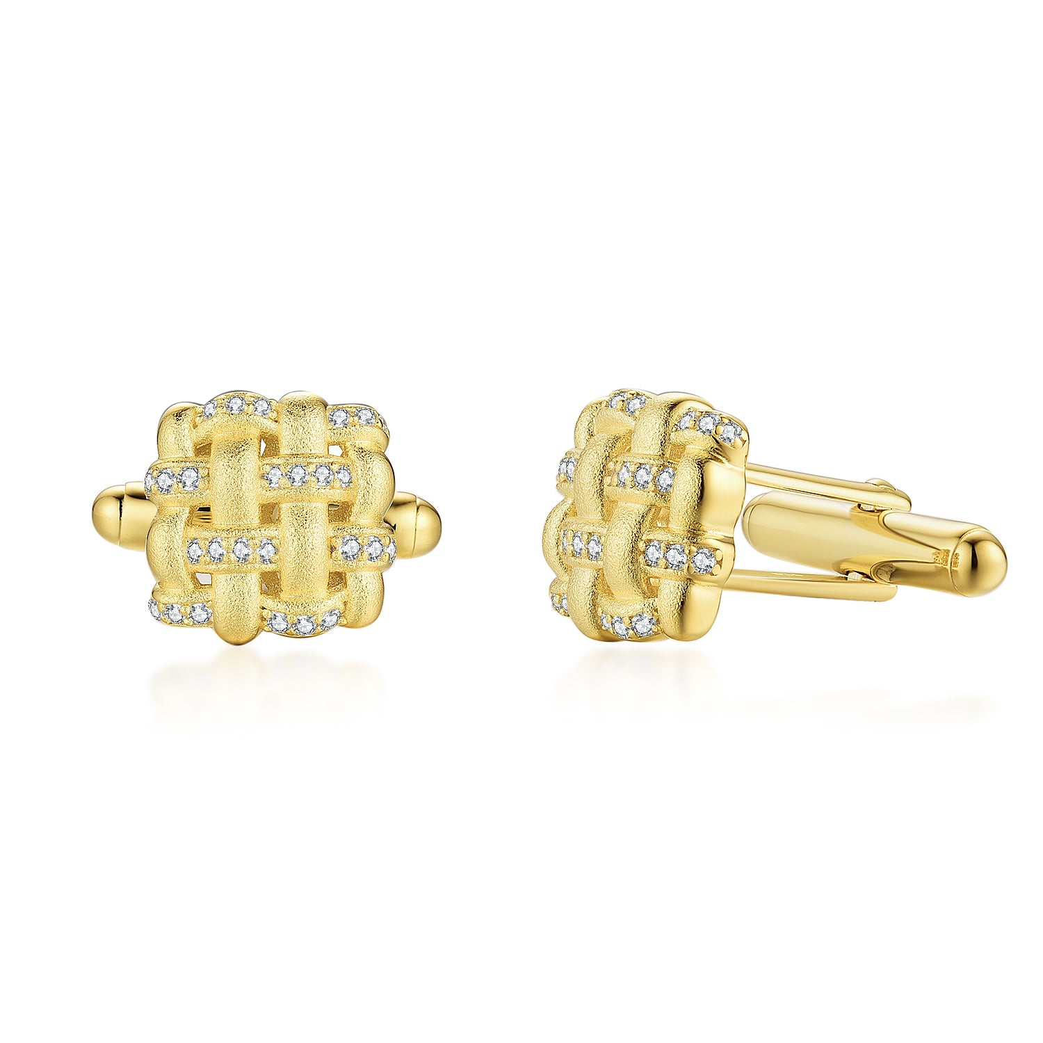 Gold Plated Sterling Silver Weave Deign with Clear CZ Accent Cufflinks