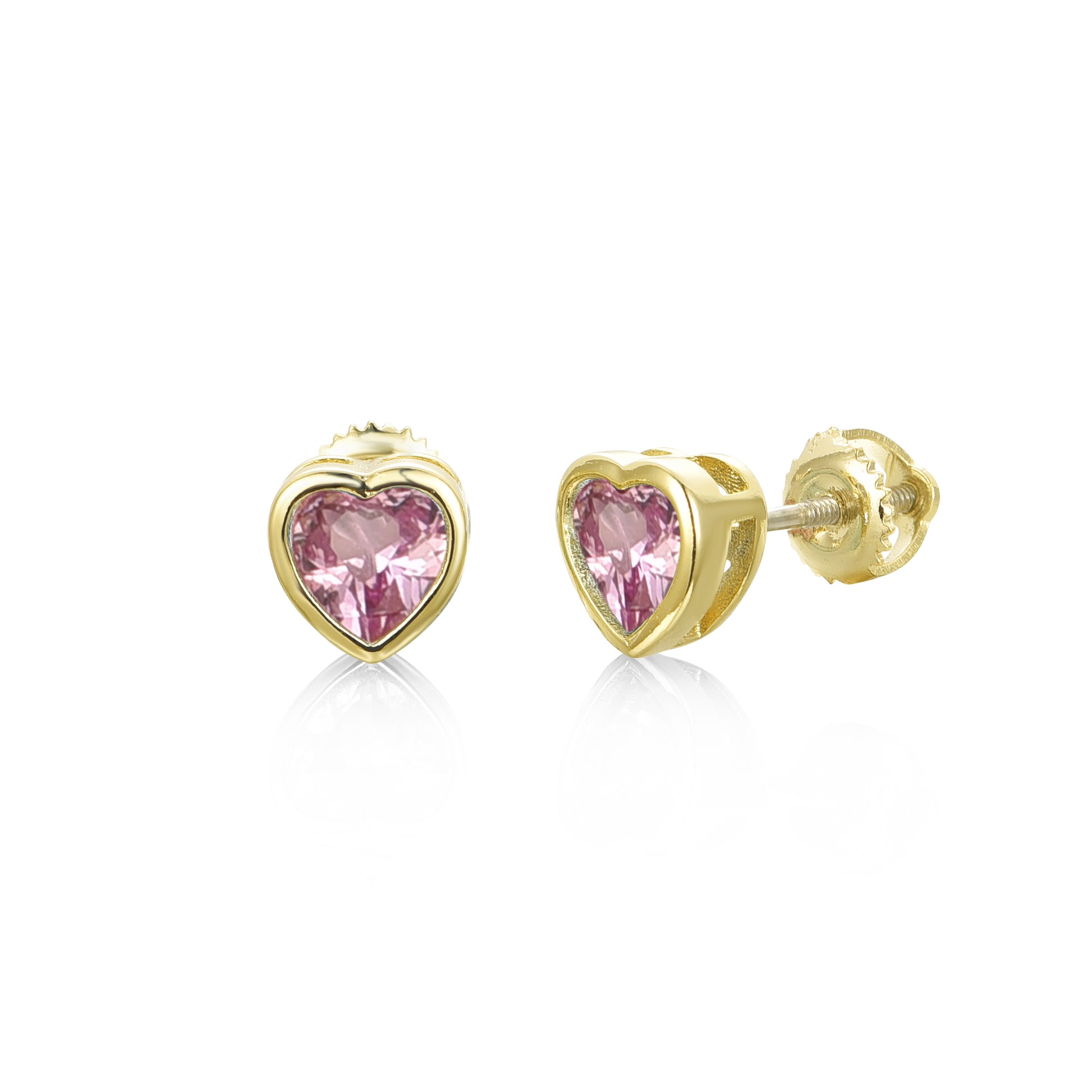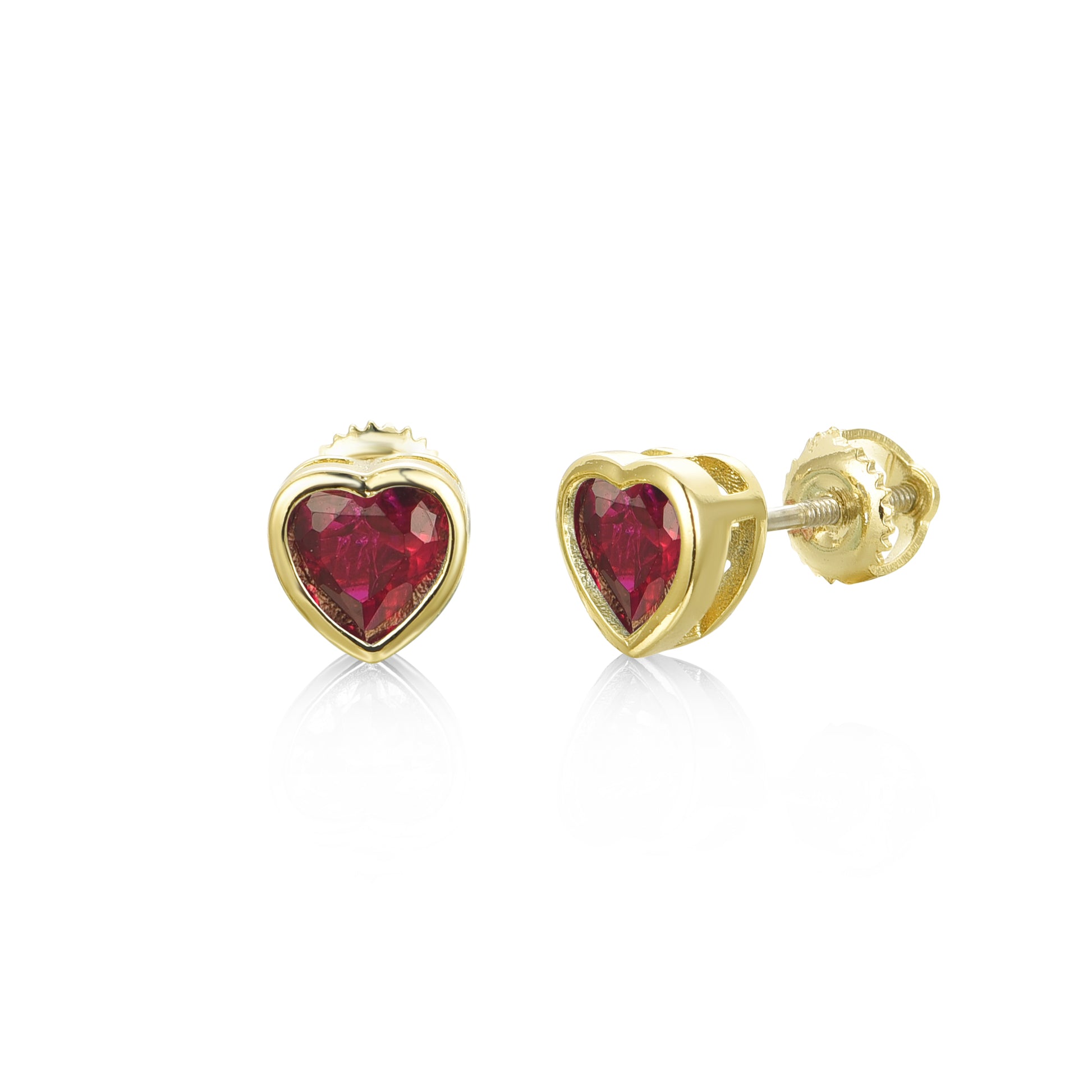 The heart-shaped design is adorned with sparkling cubic zirconia stones that come in two beautiful colors - sapphire blue, or ruby/fuchsia. The 6.5mm or mm 8mm size options allow you to choose the perfect fit for your child's ears.