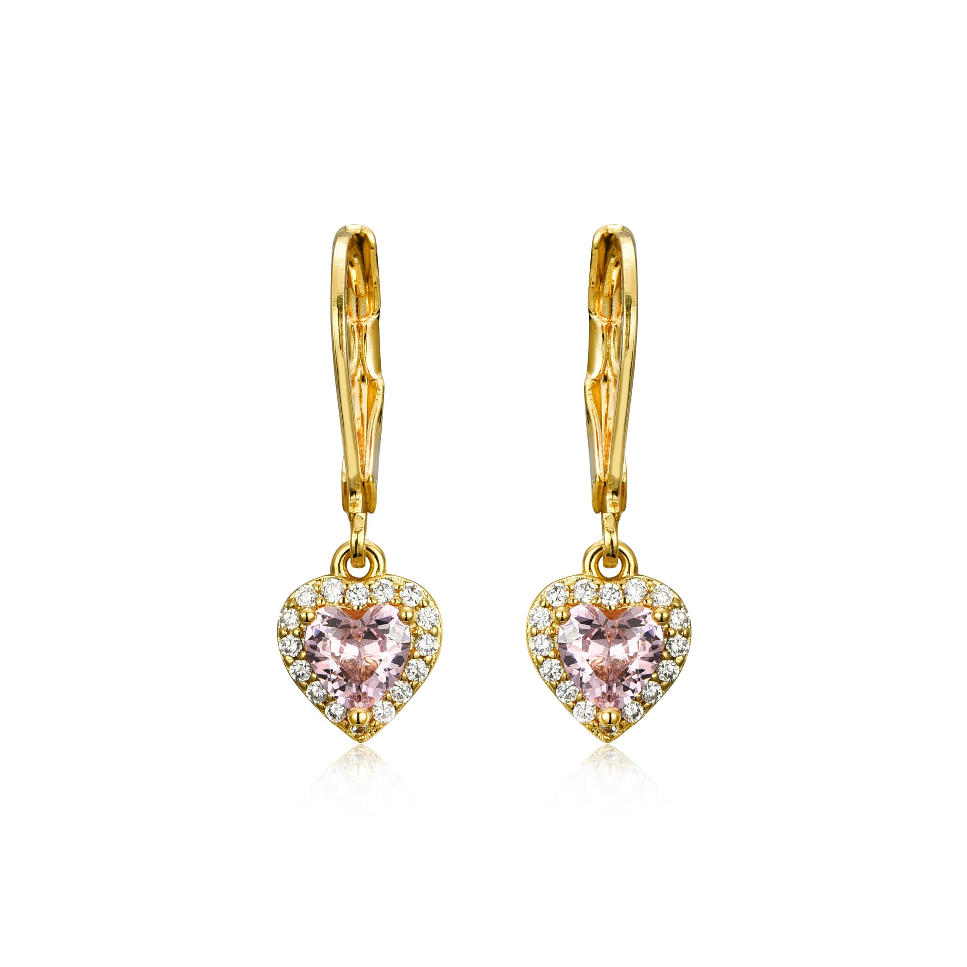 A cute pair of pretty heart-shaped dangle or stud earrings with shiny CZ micropave border.