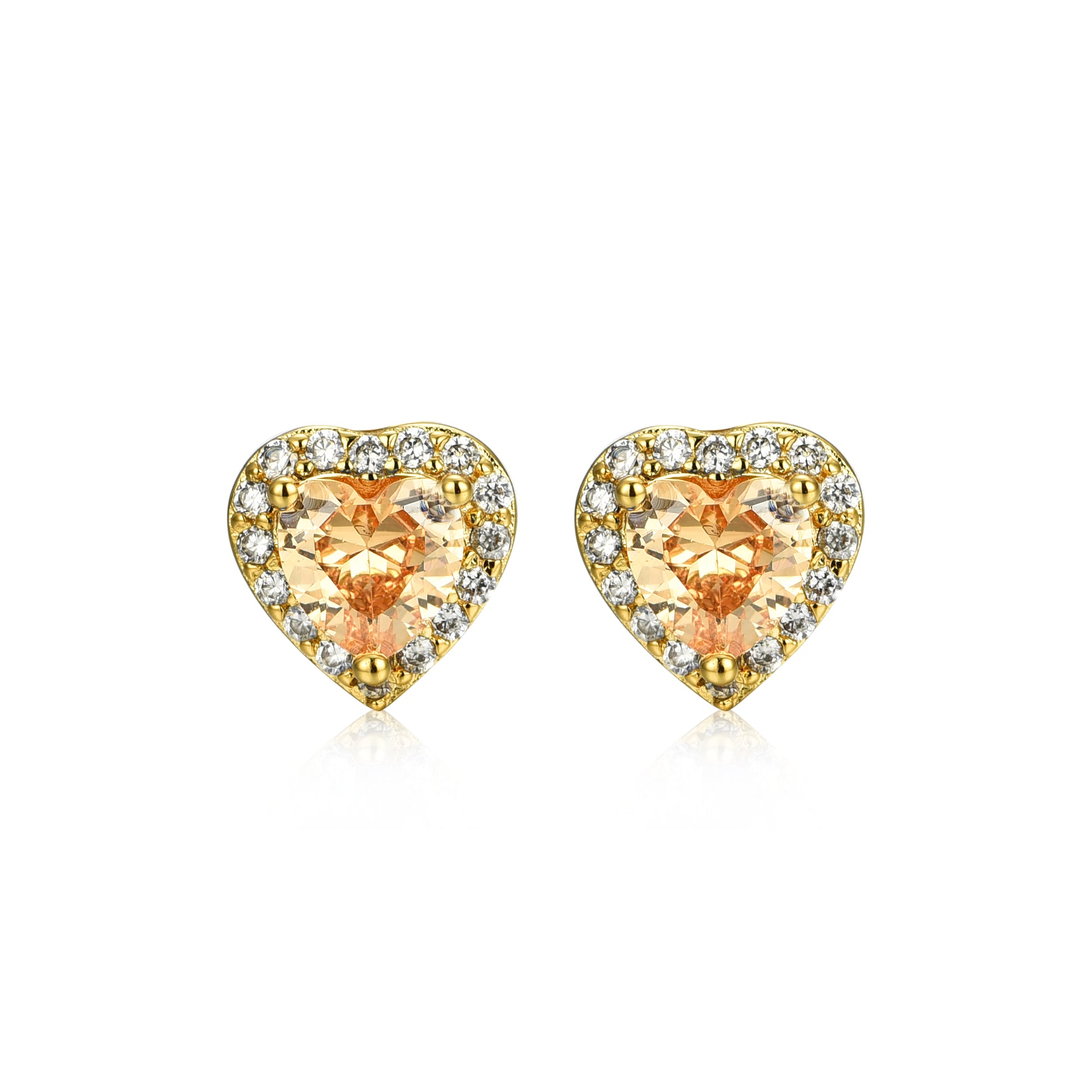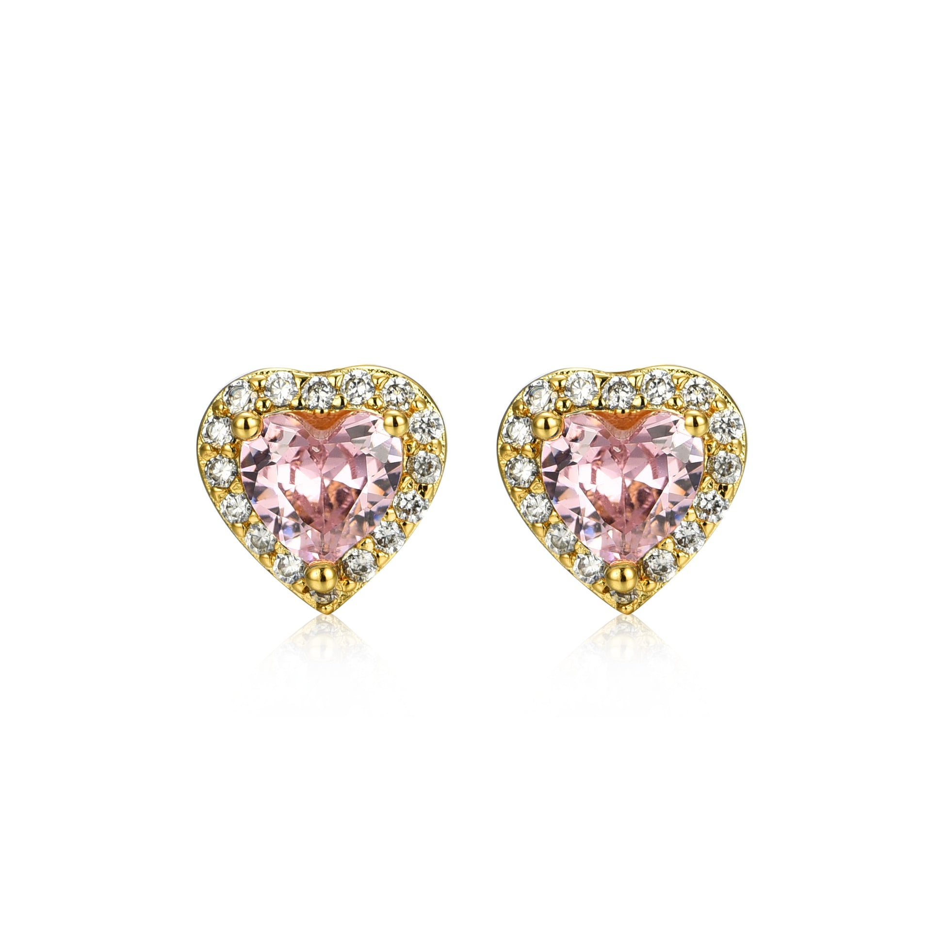 Gold Plated Surgical Steel CZ Border Heart Shape Earrings (8mm)