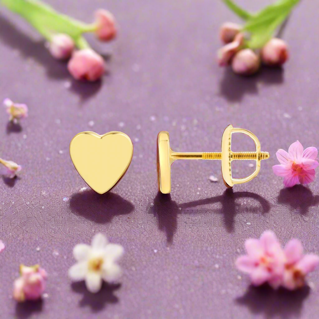 Add a playful touch to your look with these charming heart stud earrings. Plated in shimmering gold, these earrings are hypoallergenic and perfect for sensitive skin. Available in two sizes, these 5mm or 7mm hearts add a pop of style to any outfit. The threaded posts with screwbacks or notched posts with friction backs ensure secure wear.