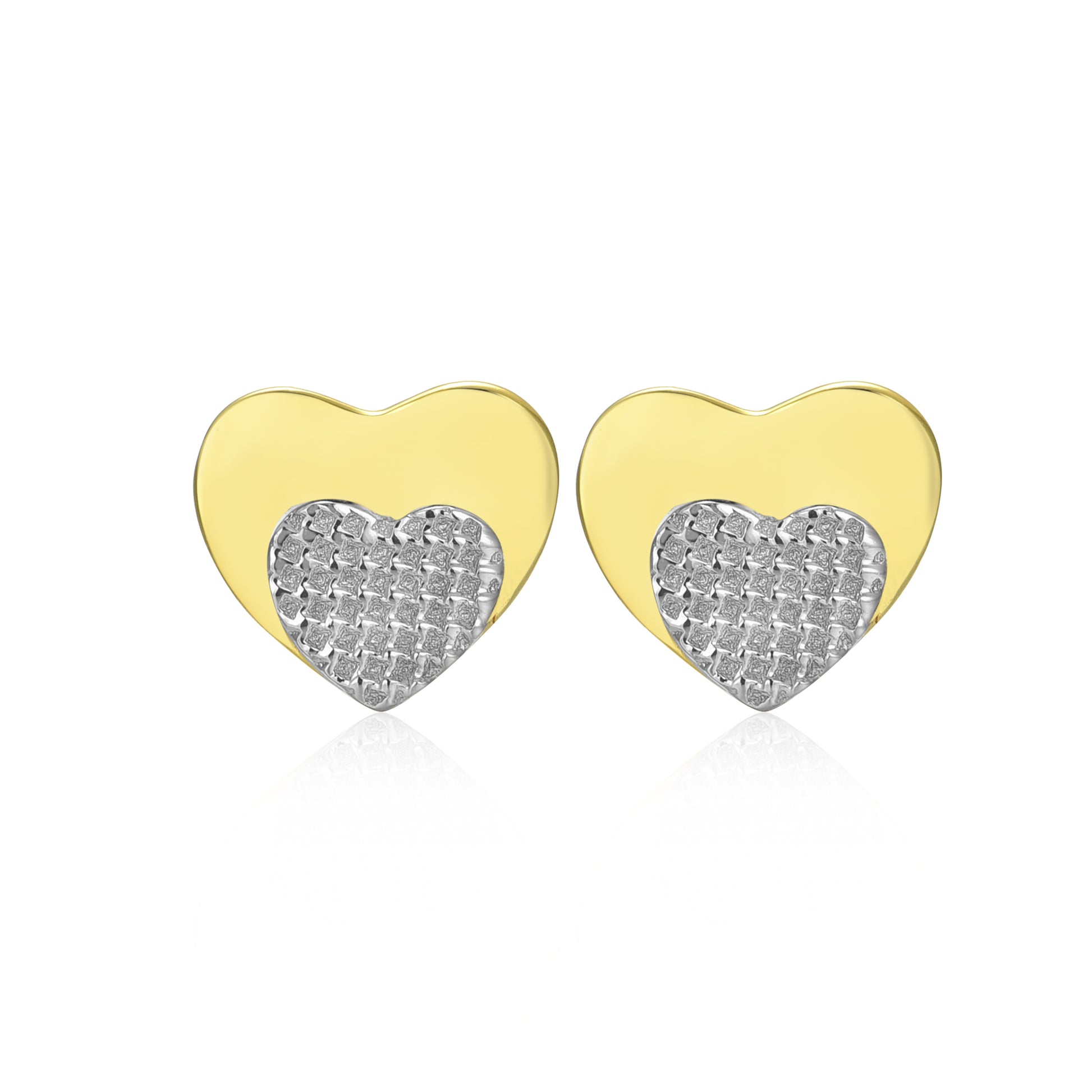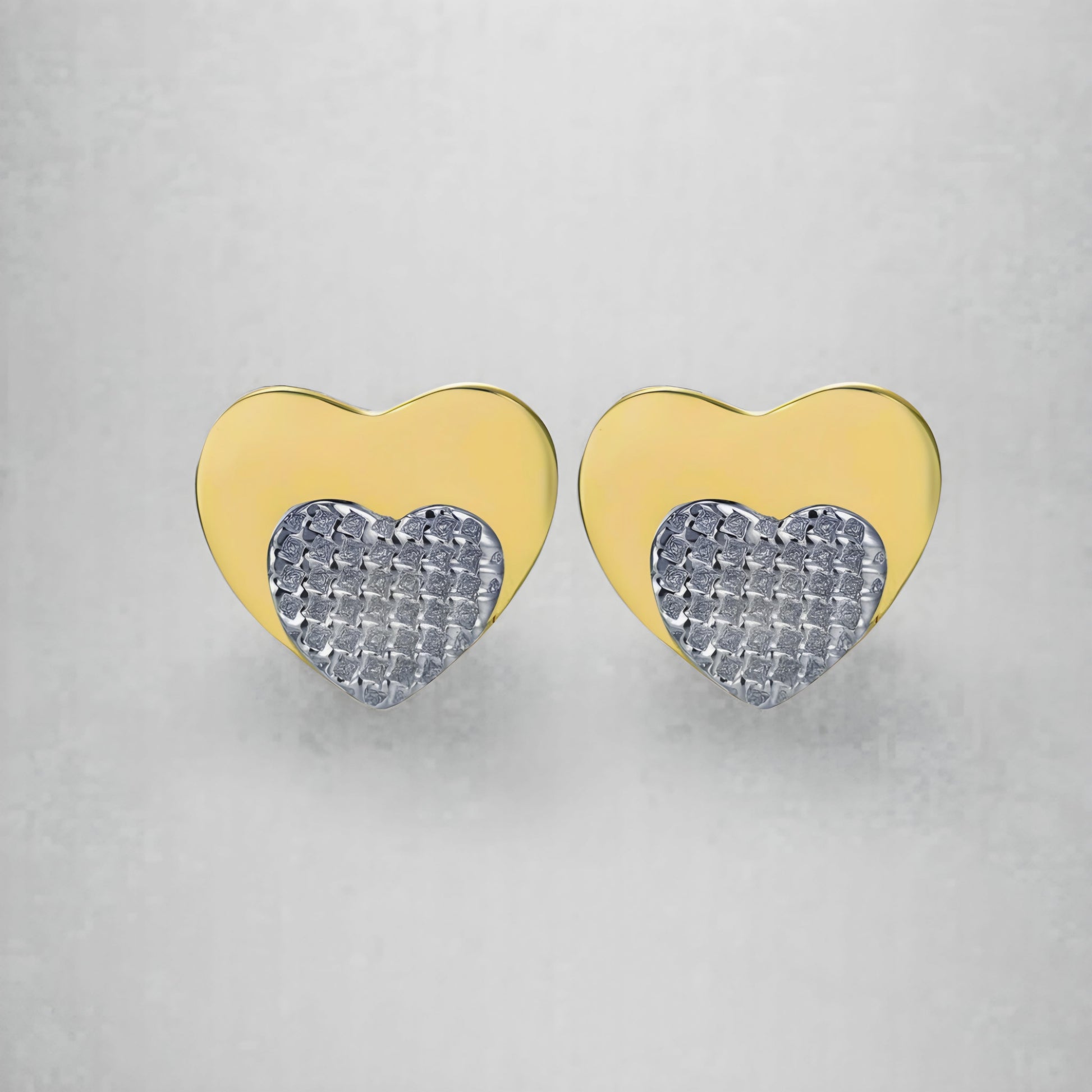 Experience the beauty and quality of our Gold Plated Surgical Steel Small Heart on Heart Stud Earrings - now available in 10mm size!