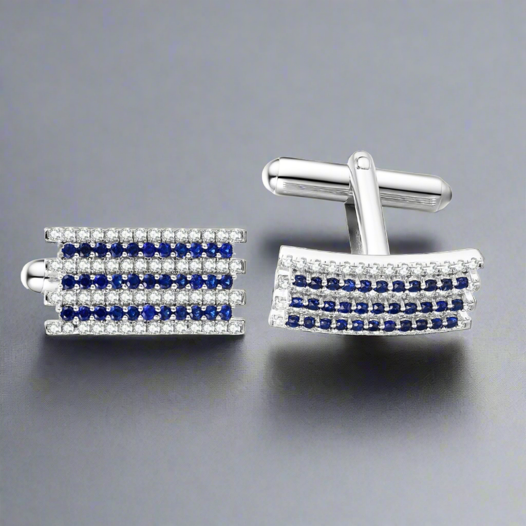 Rectangular Clear and Three Row Sapphire CZ Striped Cufflinks