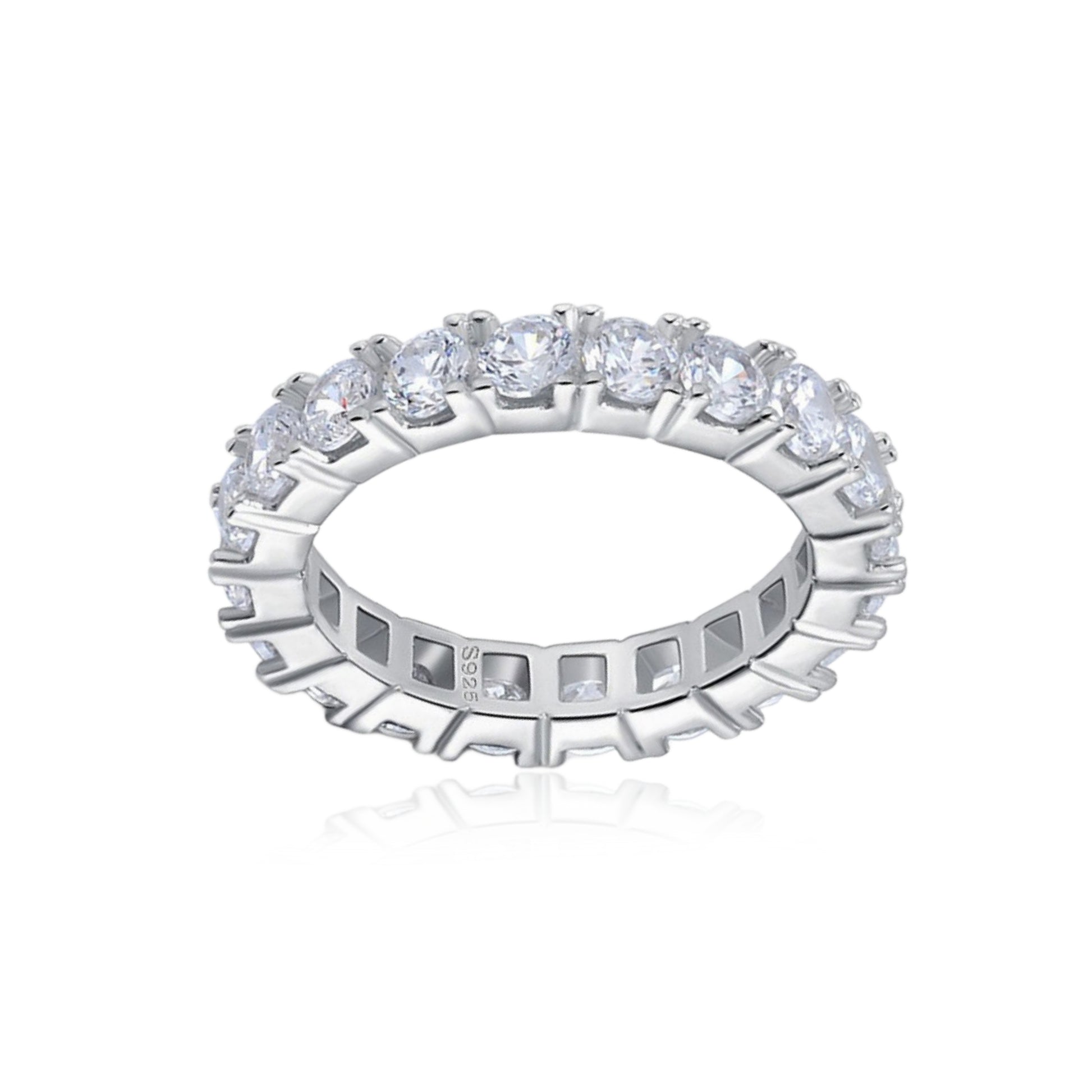 Rhodium Plated Sterling Silver 3mm CZ Eternity Band Ring in Basket Setting