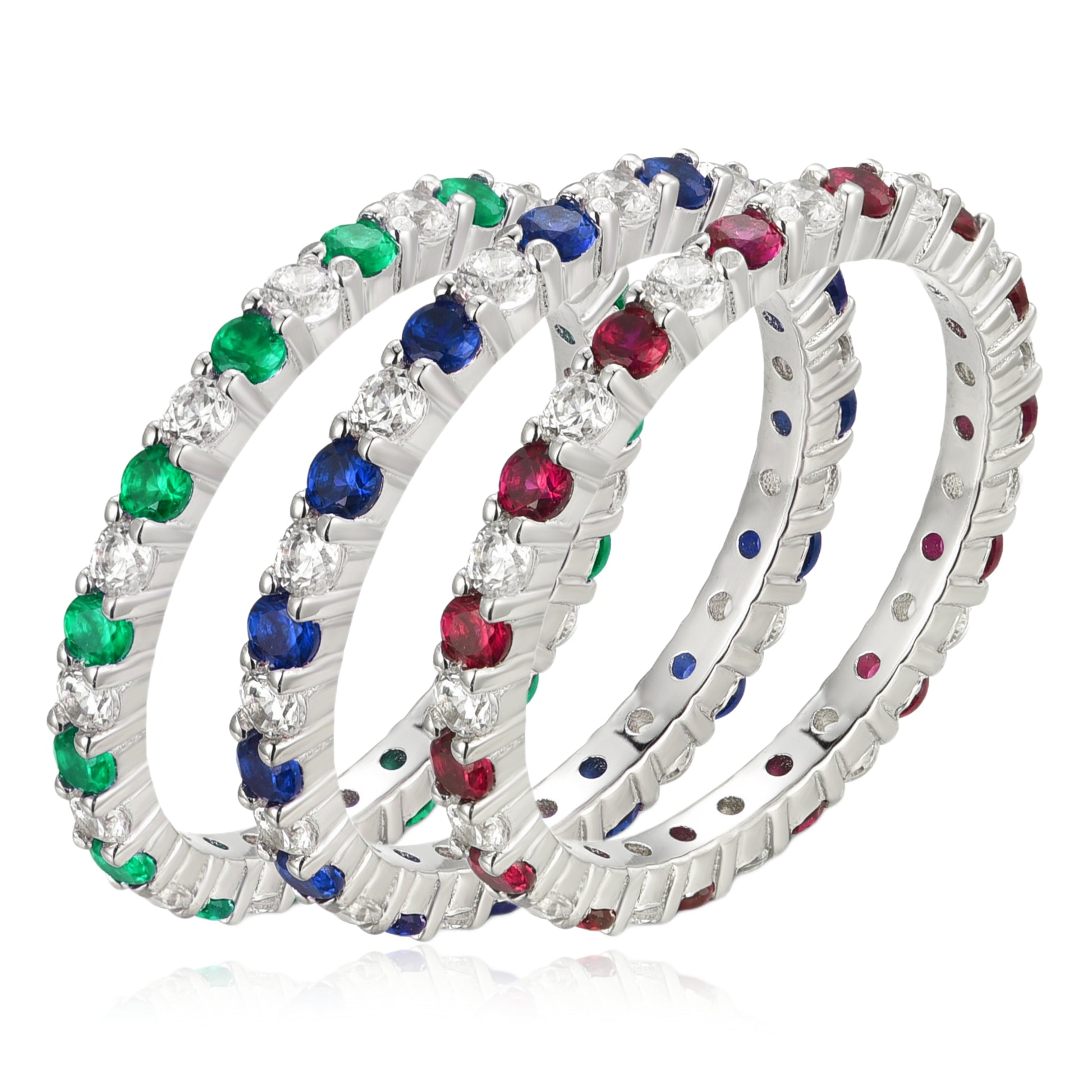 Sterling Silver Alternating Clear and Colorful CZ Eternity Band Ring