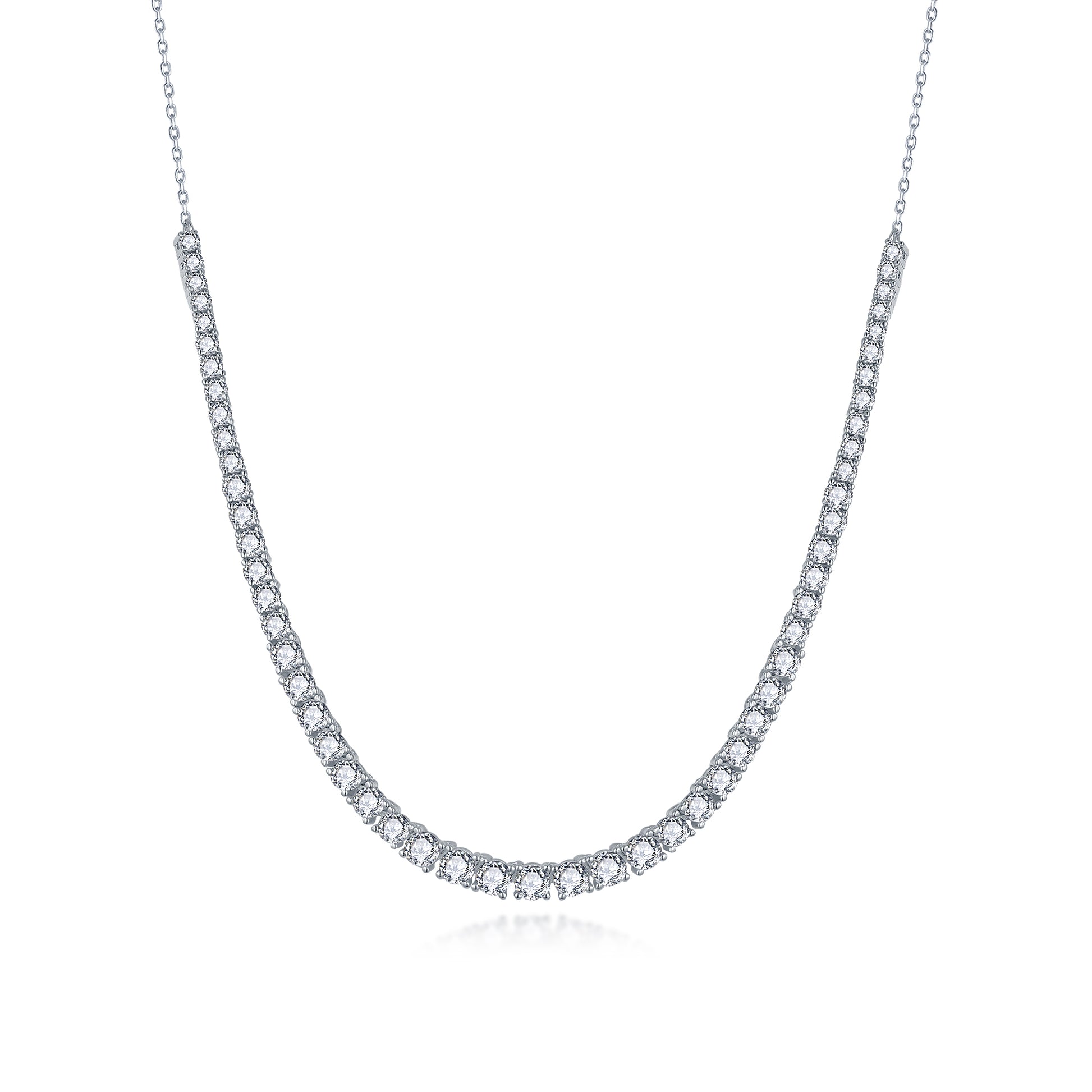 Rhodium Plated Sterling Silver Graduated CZ Half Tennis Necklace