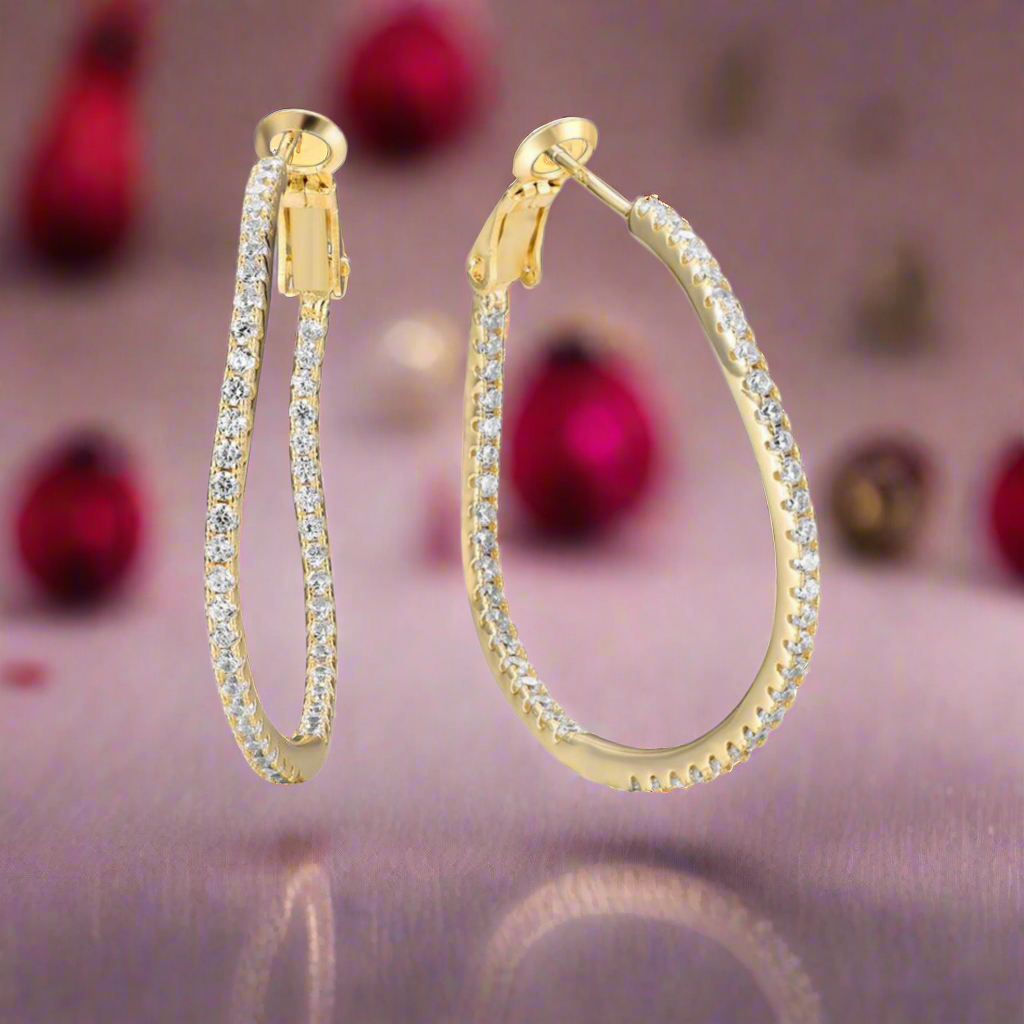 These 32mm wavy round inside outside CZ hoop earrings are the perfect way to add a touch of glamour and elegance to any outfit, whether you're dressing up for a formal event or simply looking to elevate your everyday style. Treat yourself or your loved ones to these exquisite rhodium / gold plated sterling silver hoop earrings, and experience the unmatched beauty and charm of our expertly crafted jewelry.