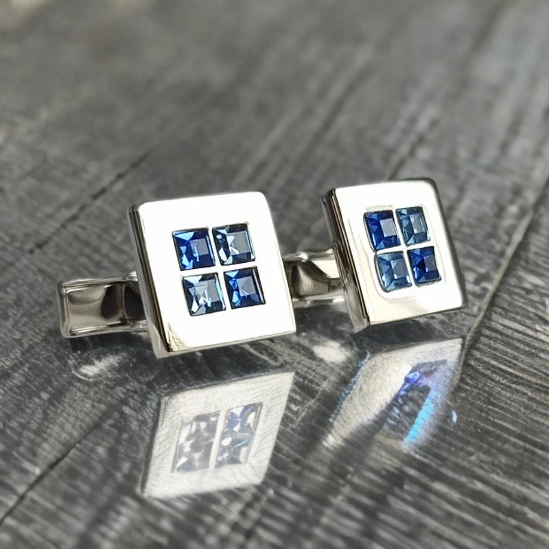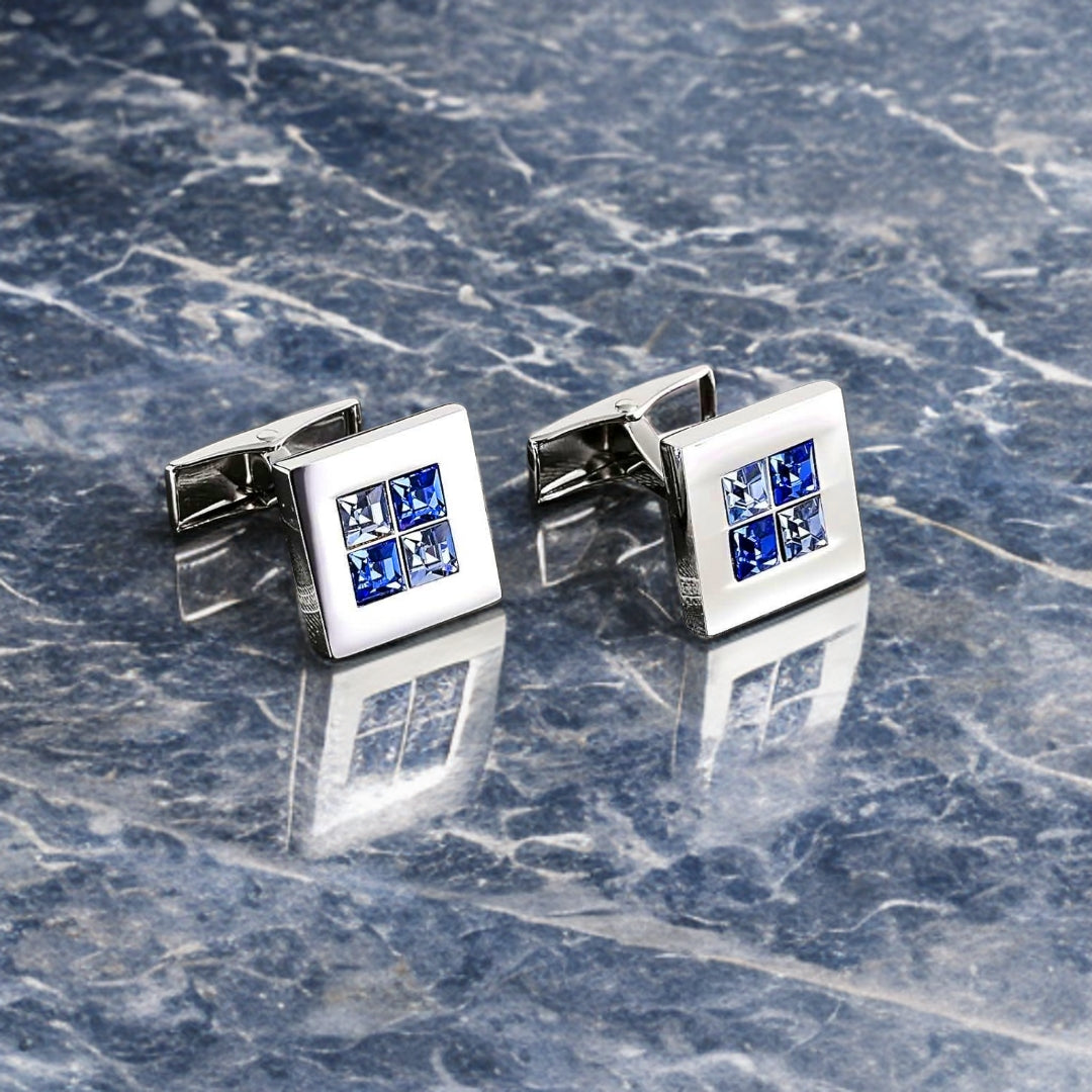 Add a touch of classic style to your wardrobe with our Silver Color Square Cufflinks with Square Blue Stones. The classic design exudes refinement and sophistication, making these cufflinks the perfect choice for any elegant occasion. Elevate your look and showcase your impeccable taste with these timeless cufflinks.