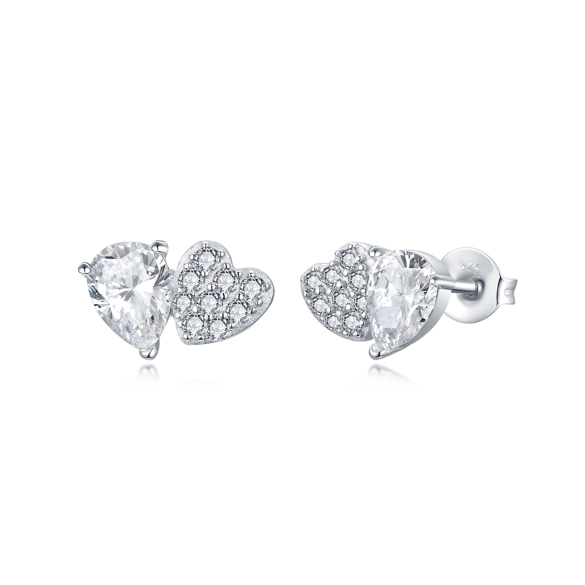 Elevate your style with our Sterling Double Motif CZ Stud Earrings. These 9.5mm studs feature intricate micropave heart and pear shapes, crafted from rhodium-plated sterling silver for a luxurious and lasting shine. A must-have for any elegant and exclusive ensemble.