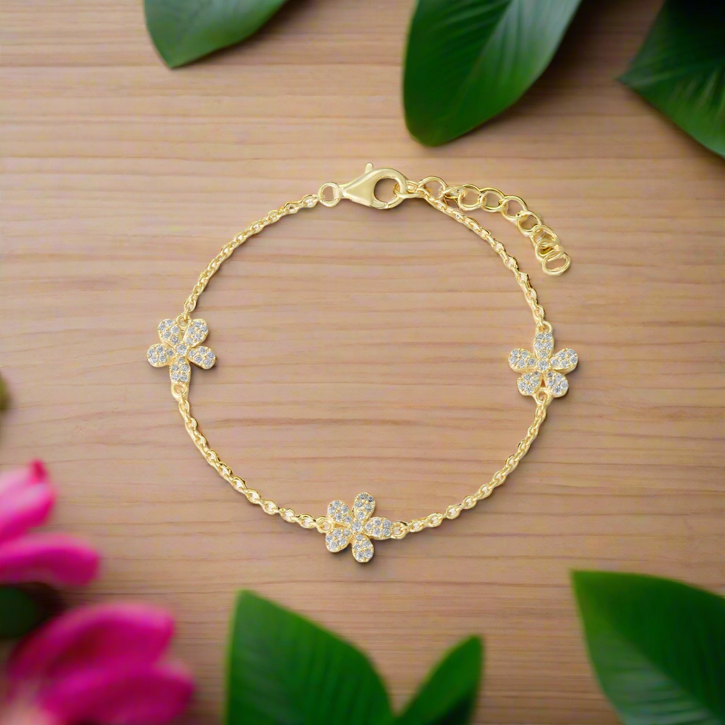 Its simplicity only adds to its beauty. It's a subtle piece that adds grace to everyday outfits. You can pair it with just about anything in your wardrobe, from casual to formal dresses. This flower bracelet is made of gold-plated Sterling Silver for a timeless finish that stays that way.