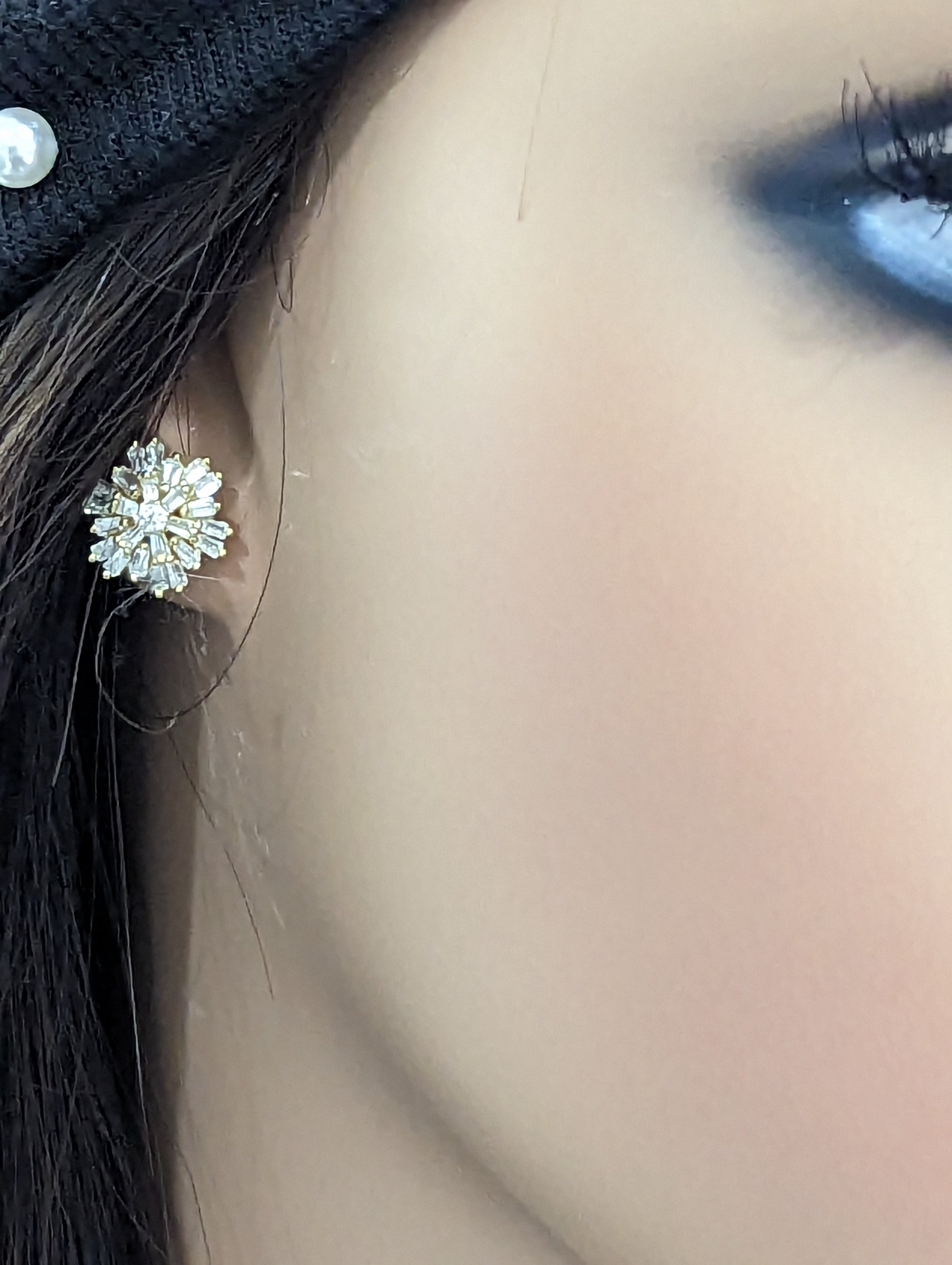Sterling Silver Baguette Flower Stud Earrings