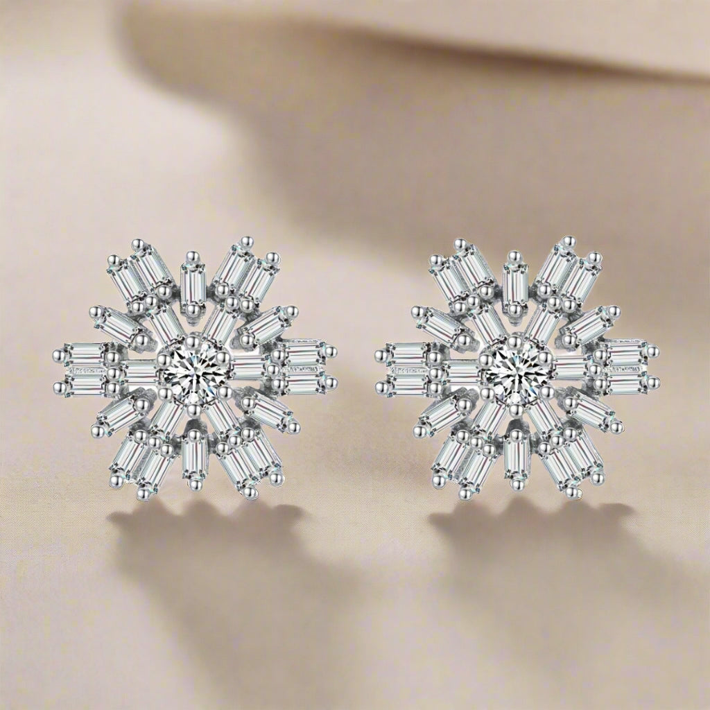 Sterling Silver Baguette Snowflake Stud Earrings