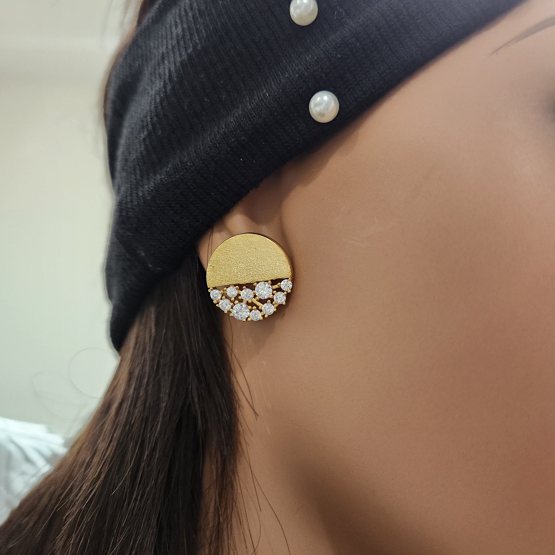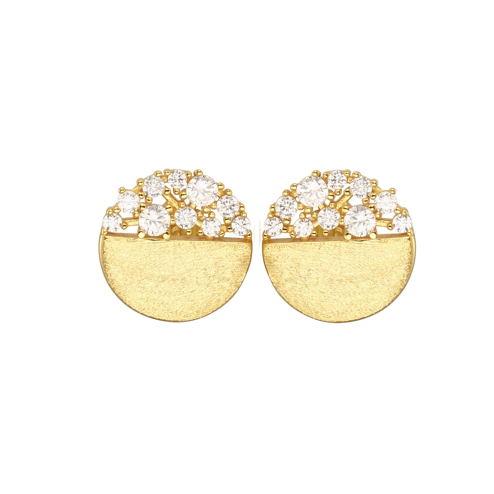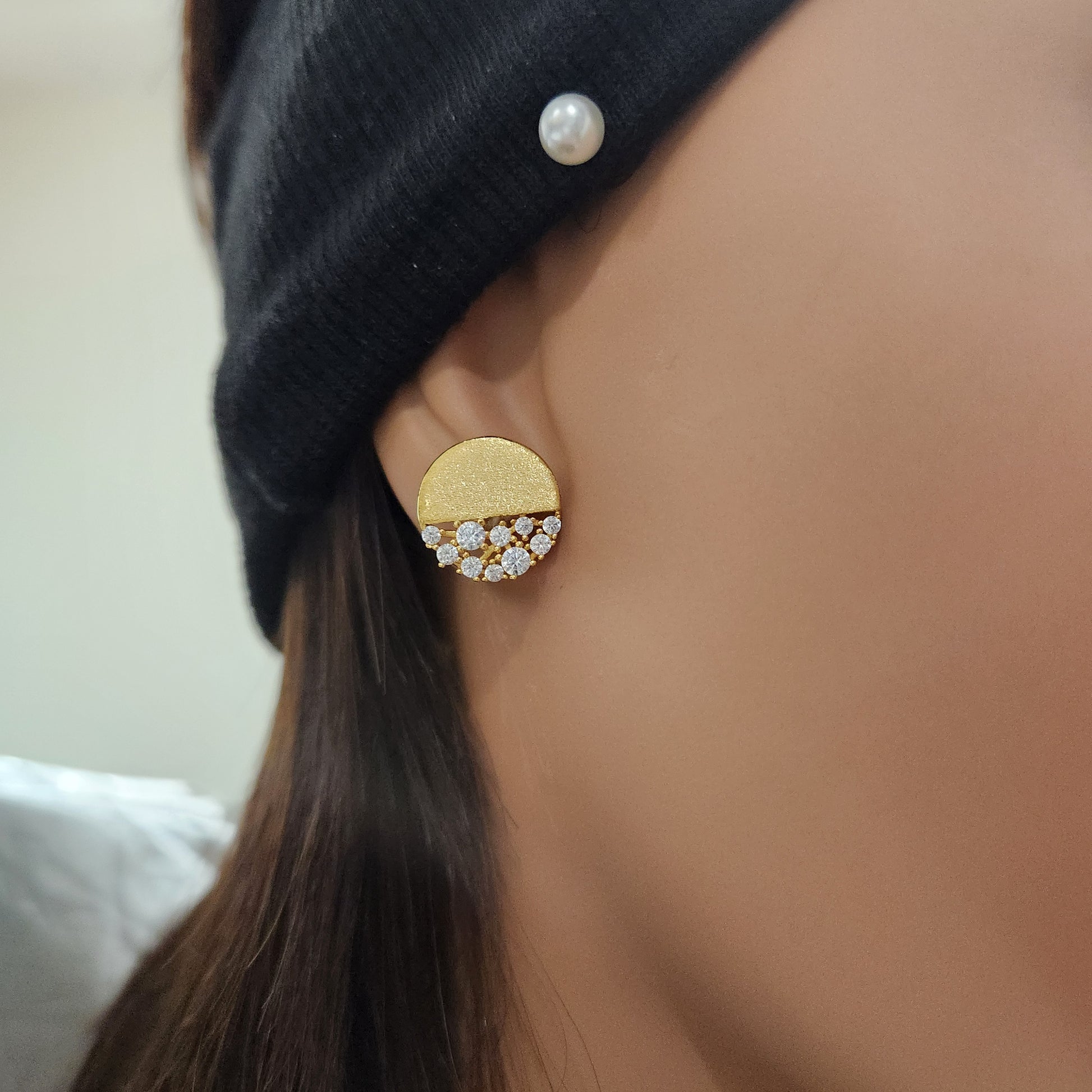 Sterling Silver Brushed Gold Plated Half CZ Stud Earrings