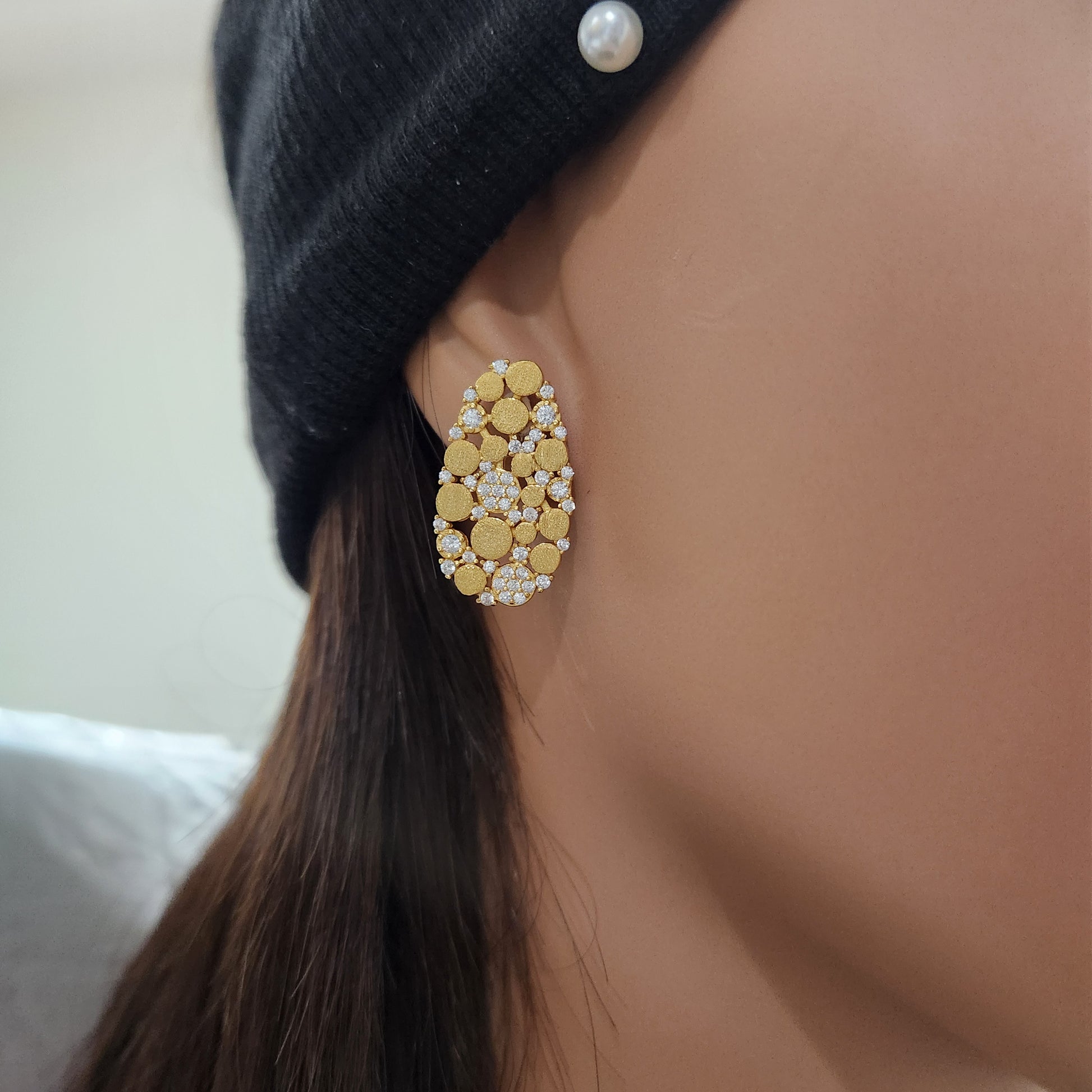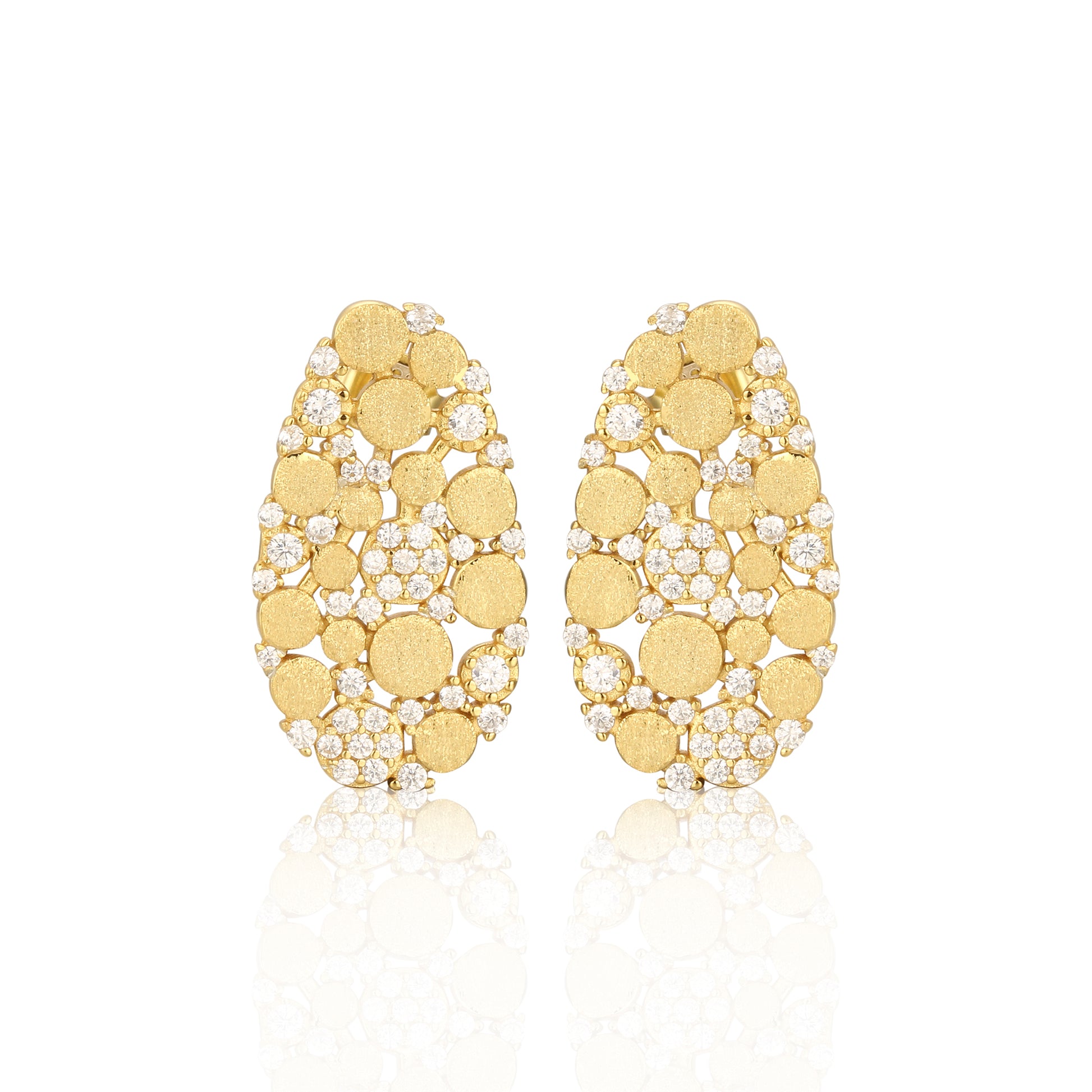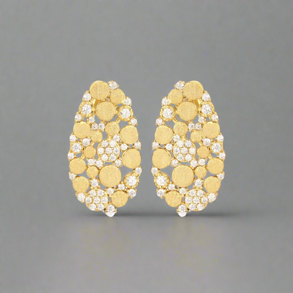 Introducing our stunning 22mm Sterling Silver Brushed Gold Plated Oval With CZ Stud Earrings! Radiate elegance and charm with these beautifully crafted earrings that will elevate any outfit.