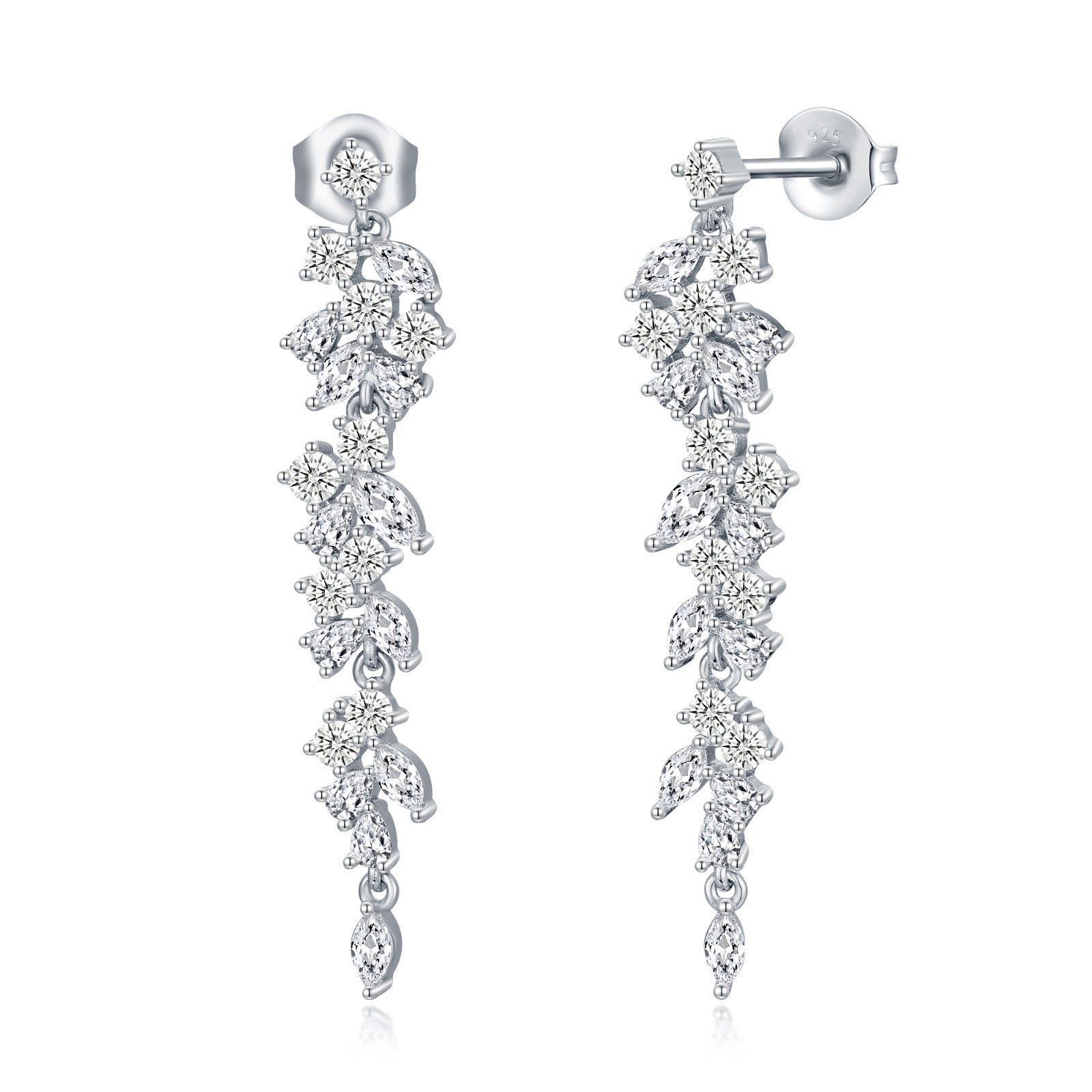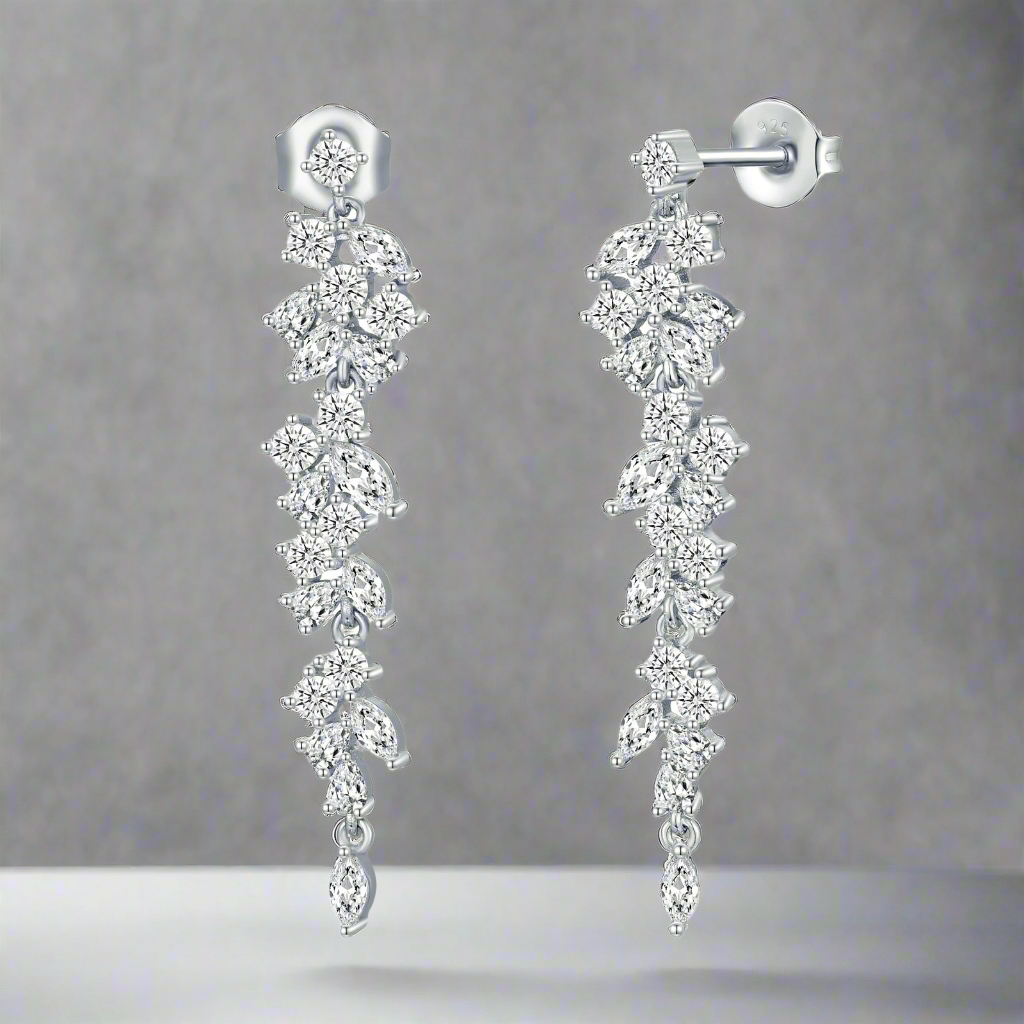 Sterling Silver Cascading Fancy Shape Thin Dangling CZ Earring
