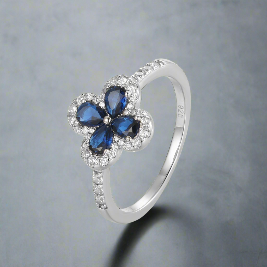This stunning Sterling Silver Colored CZ Flower Ring is now available in a variety of vibrant colors, including Sapphire, Ruby, Emerald, and Light Blue. Perfect for adding a pop of color to any outfit. This ring is available in sizes 5 through 9.