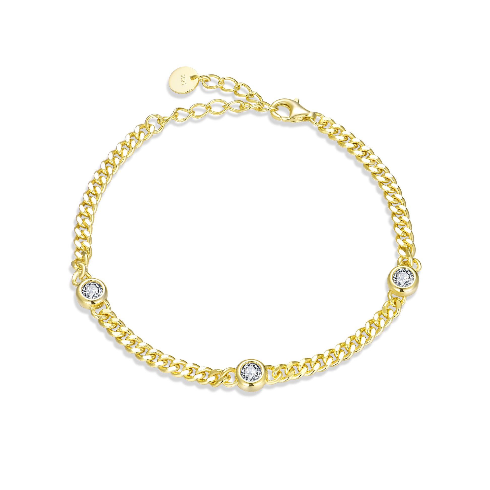 Sterling Silver Cuban Chain and Bezel Set CZ Bracelet