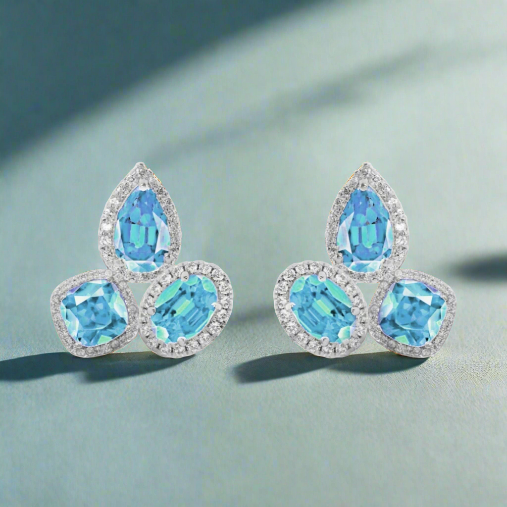 Sterling Silver CZ Halo Around Three Stone Stud Earring
