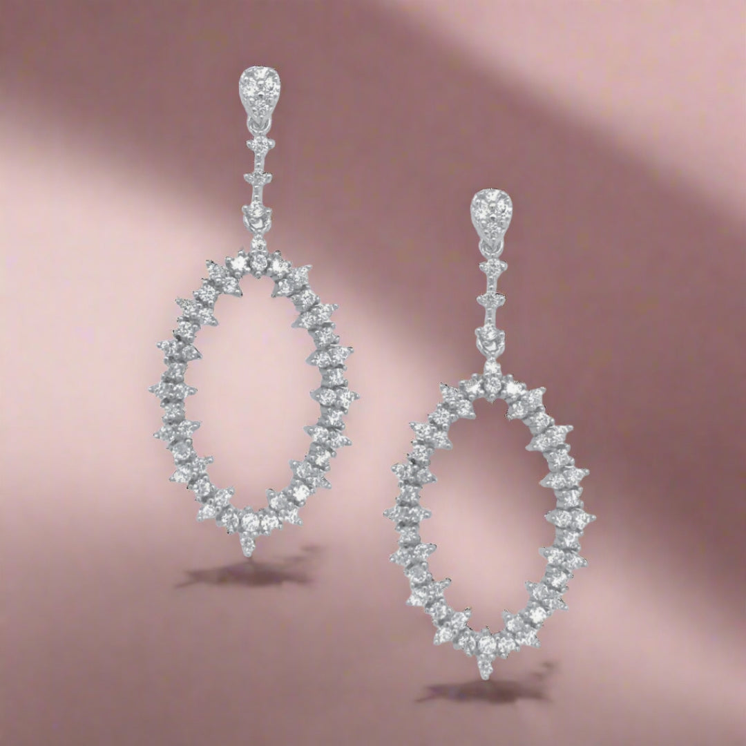 A mesmerizing pair of sterling silver earrings that help you shine. They're magnetic statement pieces that draw people's eyes with their old-school charm with a modern feel. Pair these bedazzling earrings with simpler outfits to elevate them with pizzazz. Add drama to elegant outfits with these earrings. You can get them in a small version (1 inch) for frequent usage or a medium version (1½ inches) for special occasions. These marquis-shaped .925 earrings are coated in rhodium for durability.